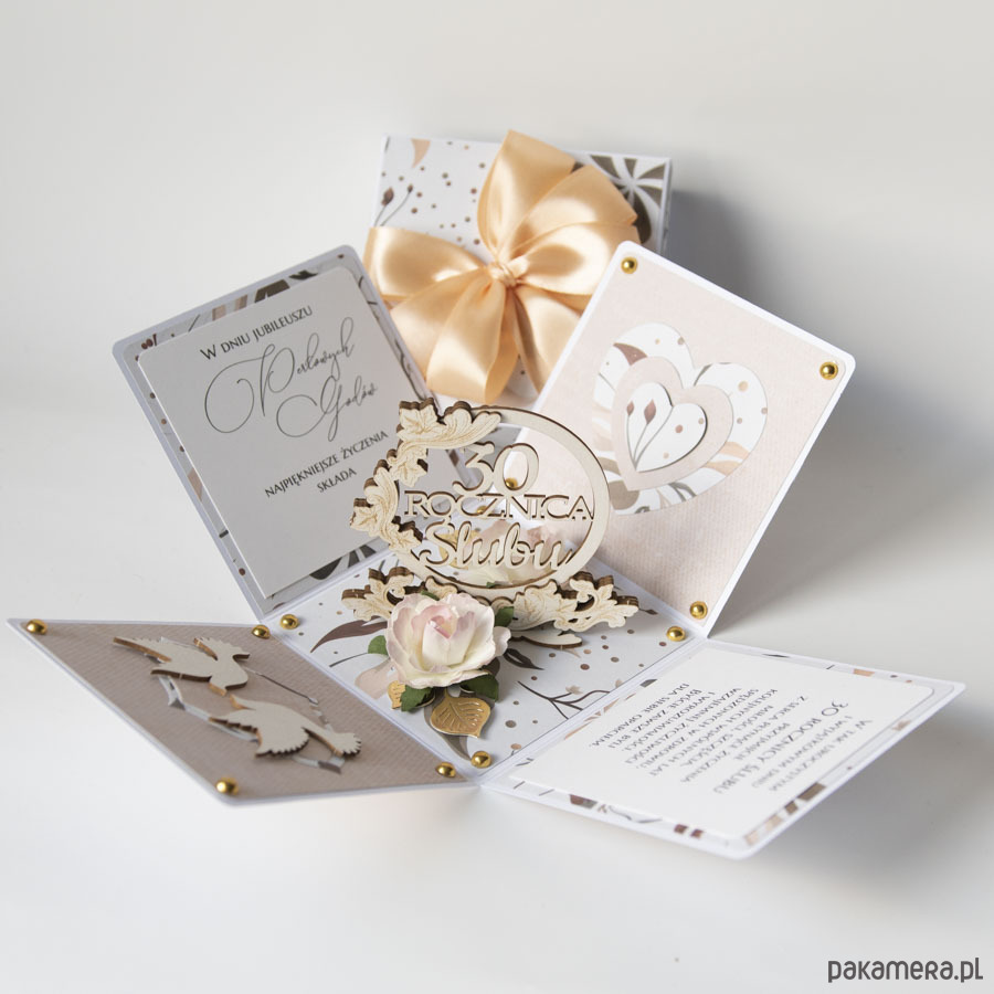 30 rocznica ślubu, perłowe gody, exploding box, kartka 3d