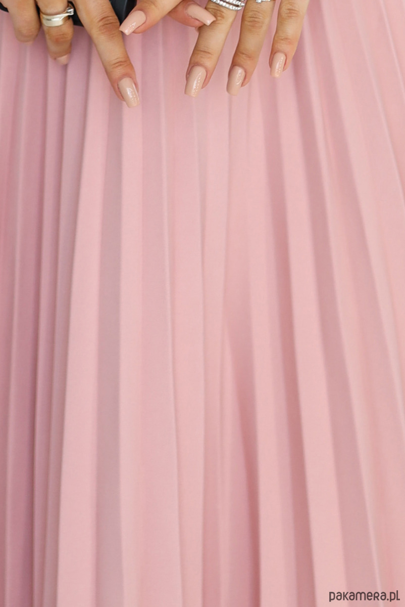 311-19 LILA Klasyczna plisowana sukienka z krótkim rękawkiem - pudrowy róż
