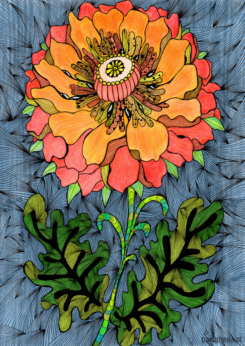Ilustracja Botaniczna, Ekspresja Koloru, Stylizacja Liniowa, Doodle Art/Zentangle Inspired, Pop Art
