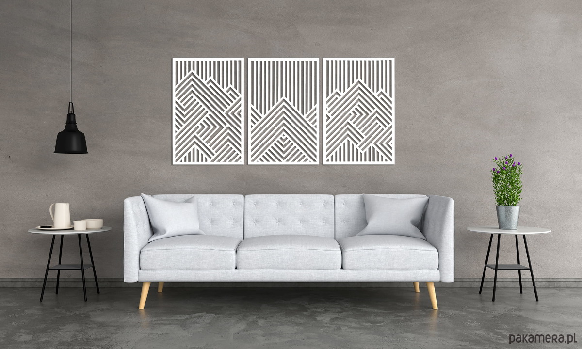 Zestaw 3 ażurowych dekorów inspirowanych klasyczną, ponadczasową geometrią. Doskonale podkreśli nowoczesny, minimalistyczny charakter Twojego wnętrza.