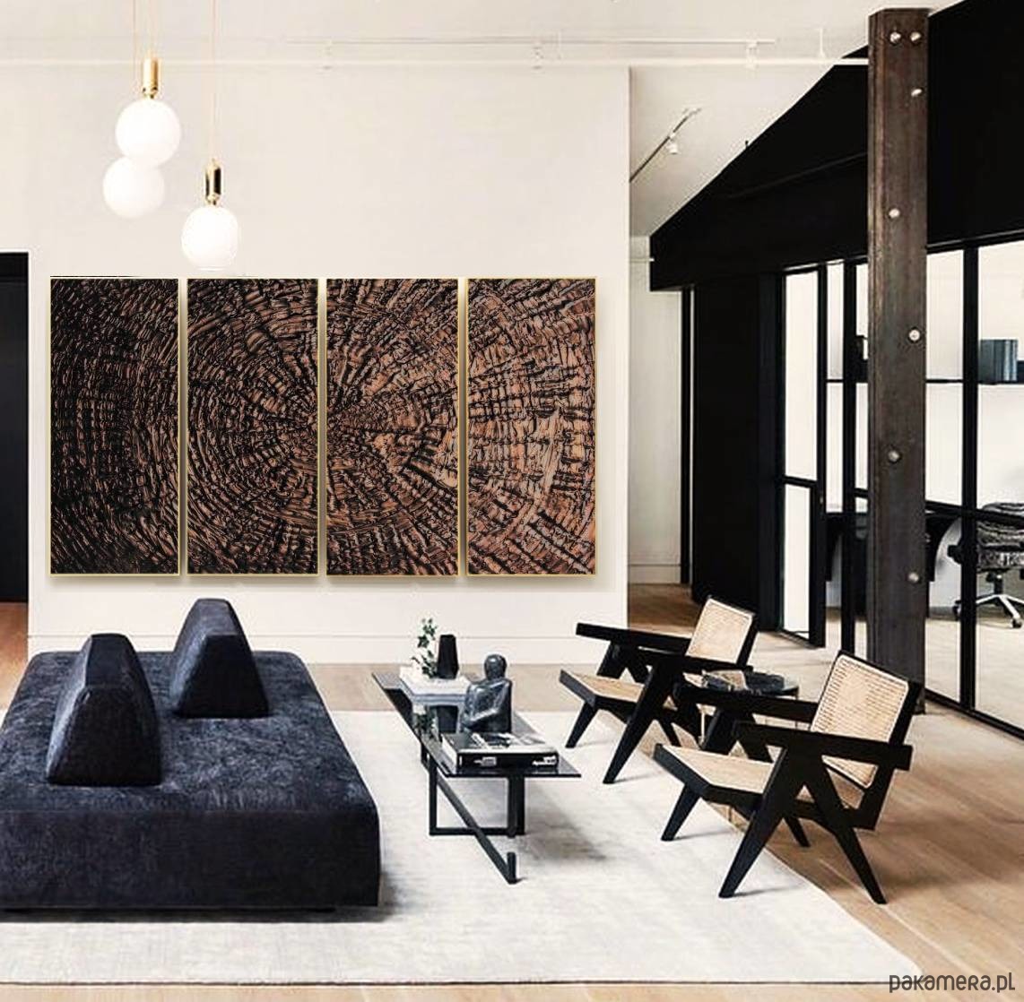 4-częściowy obraz na płótnie abstrakcyjny metaliczny brąz
