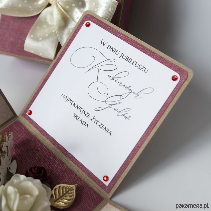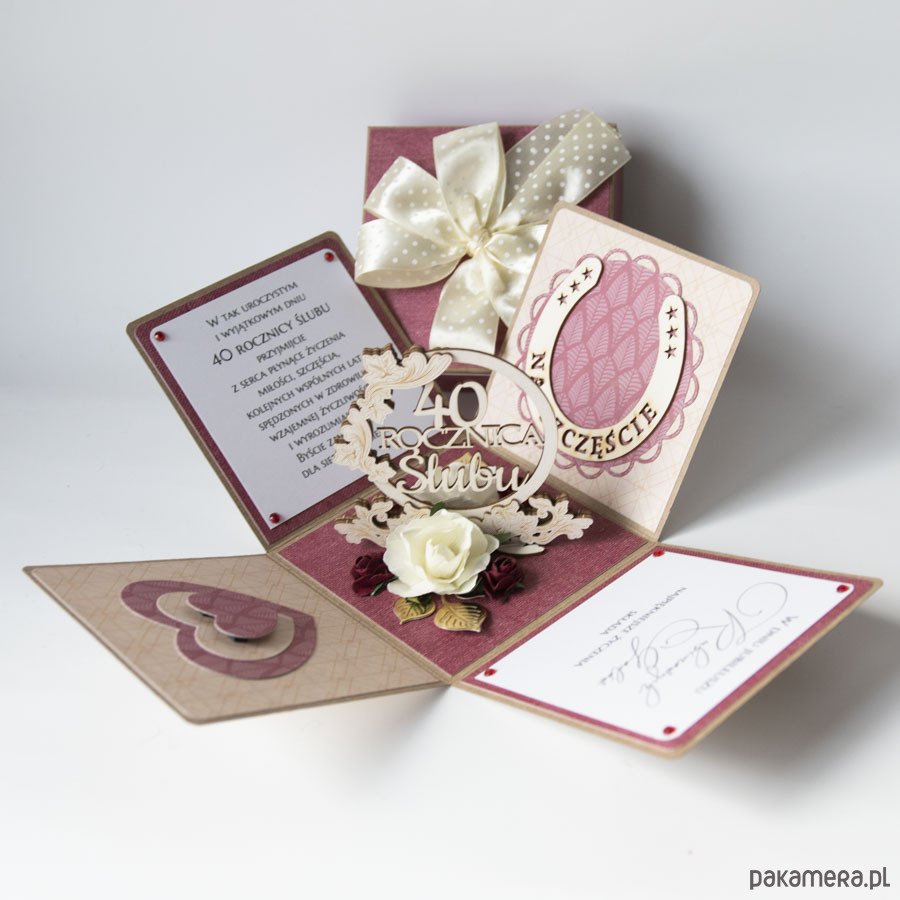 40 rocznica ślubu, rubinowe gody, exploding box, kartka 3d
