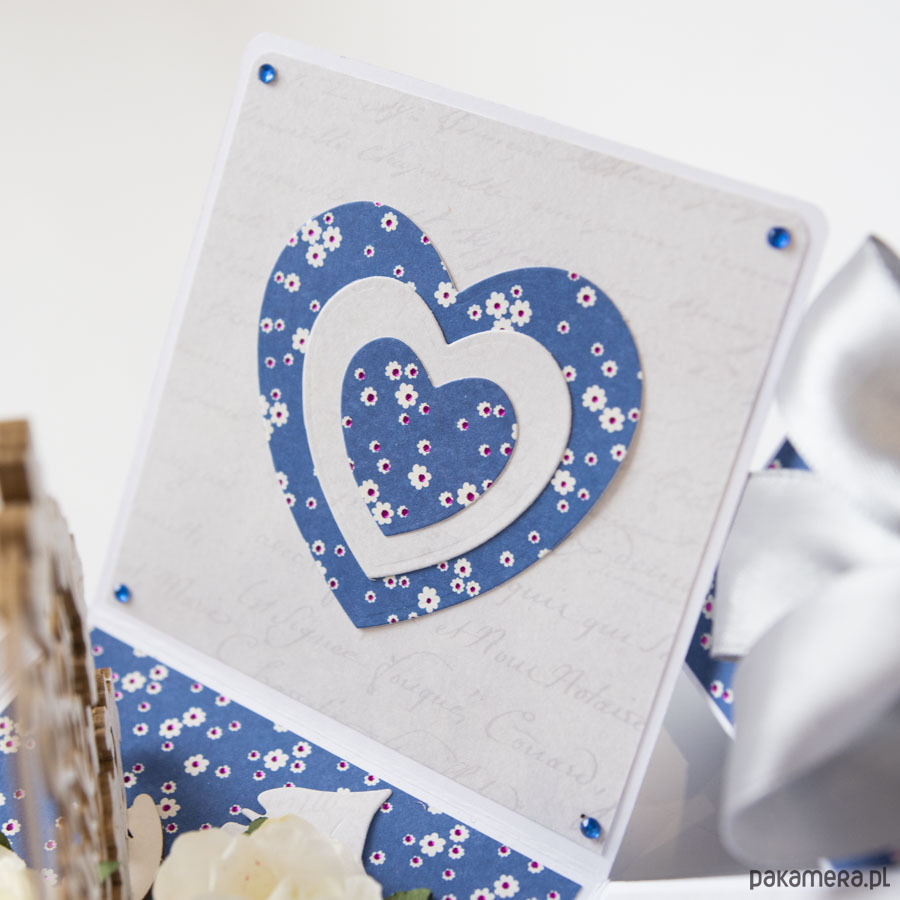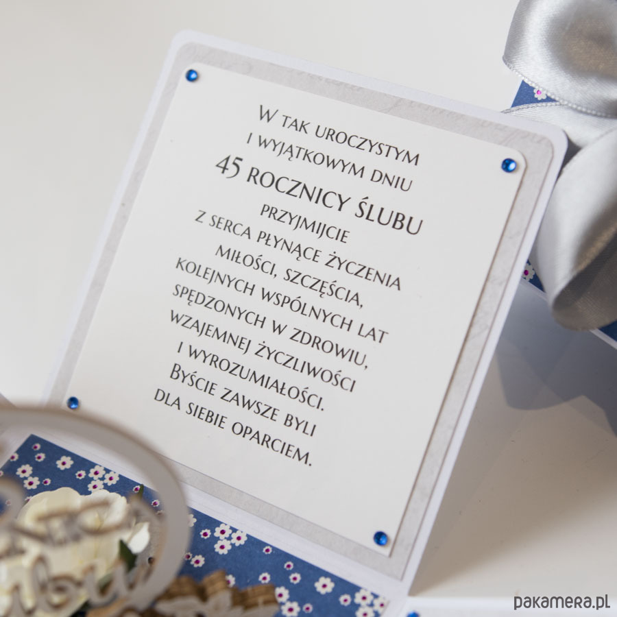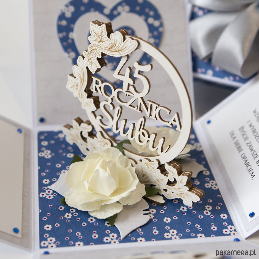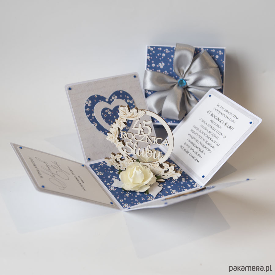 45 rocznica ślubu, szafirowe gody, exploding box, kartka 3d