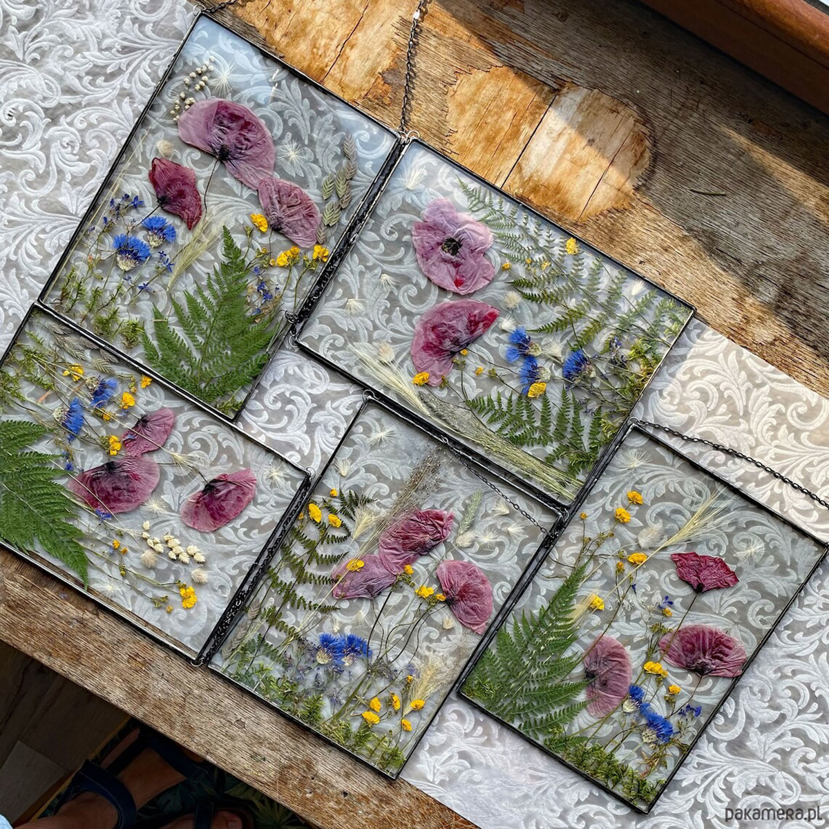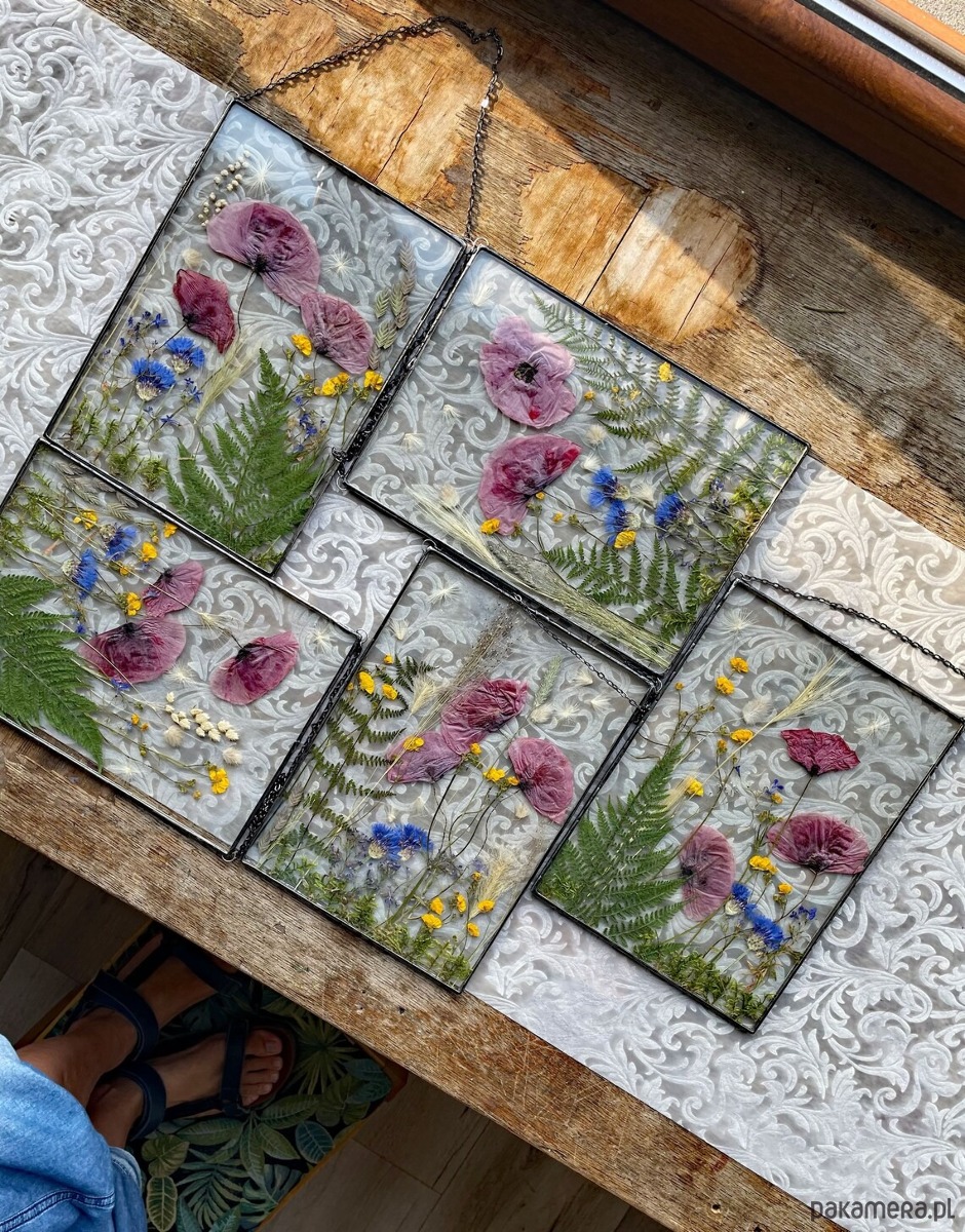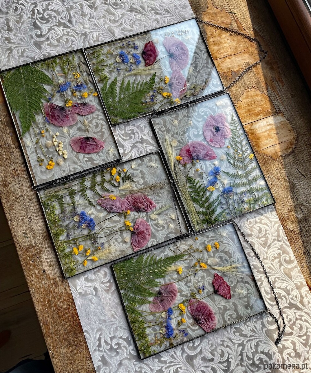 Witraże z kompozycją z suszonych roślin wykonane w całości w pracowni rękodzieła MARIAELA.