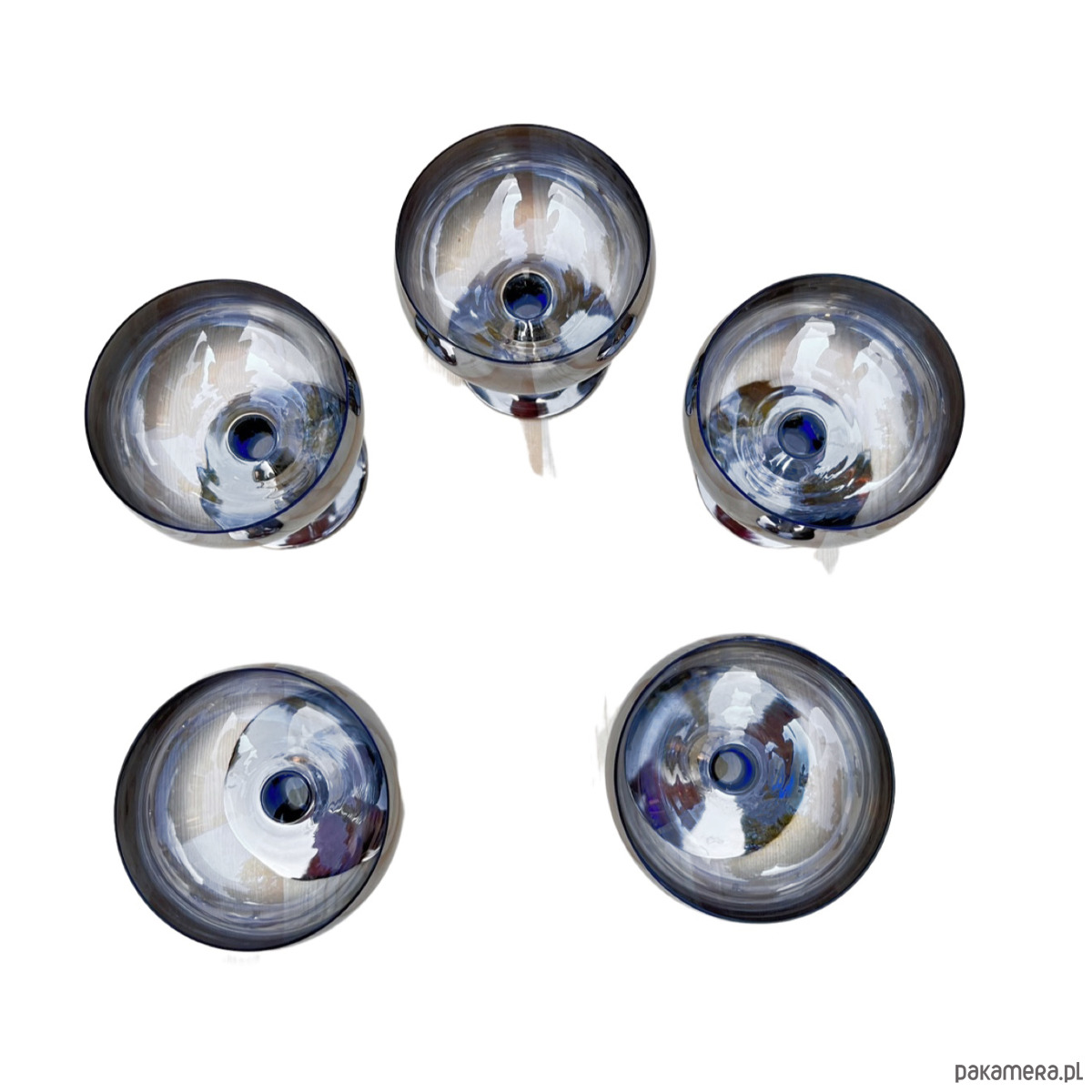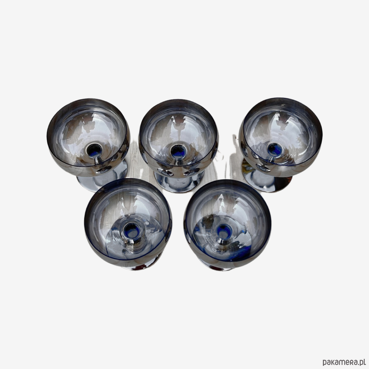 5 kieliszków szkło posrebrzane, Józefina Krosno Polska lata 80.
