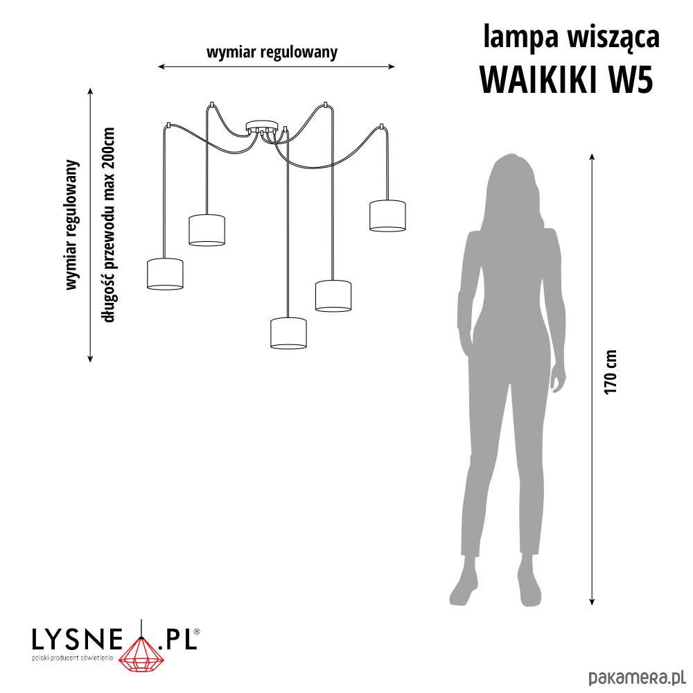 Wymiary lampy: wysokość - regulowana, szerokość - regulowana, długość przewodu max. 200 cm
