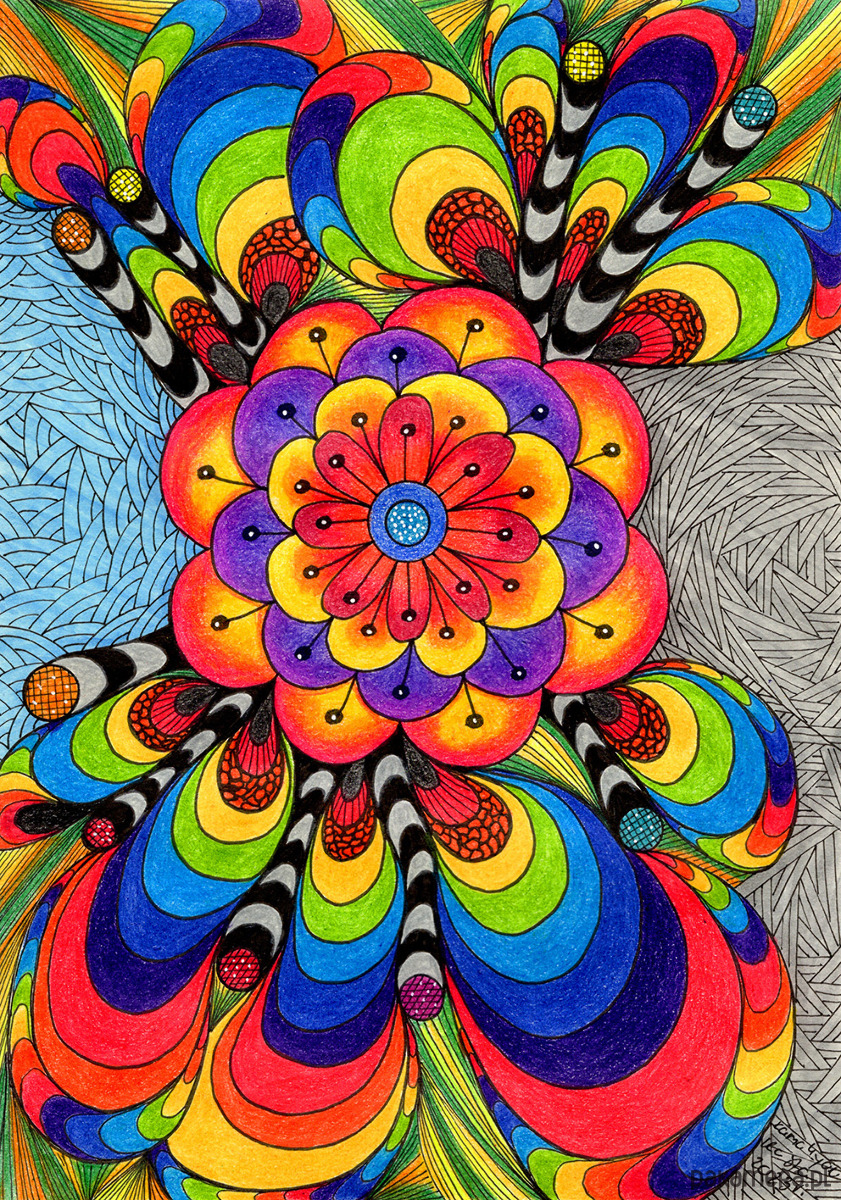Centralny kwiat oznacza źródło energii, z którego wypływa siła i światło.