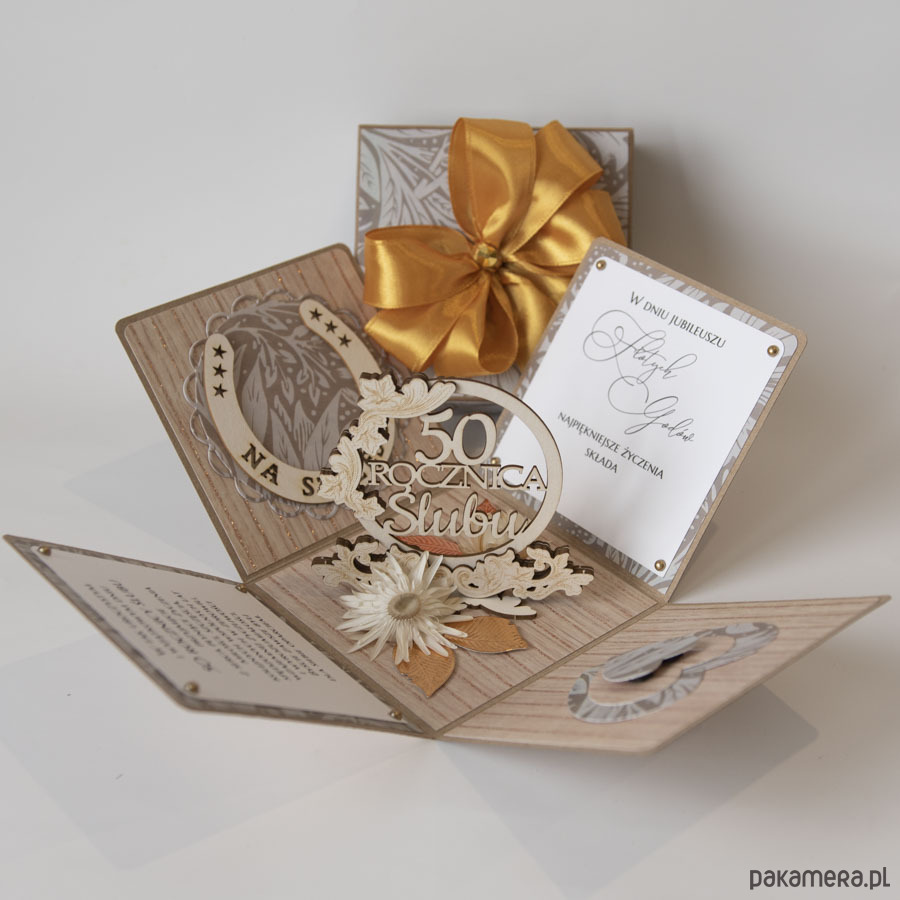 50 rocznica ślubu, złote gody, exploding box, kartka 3d