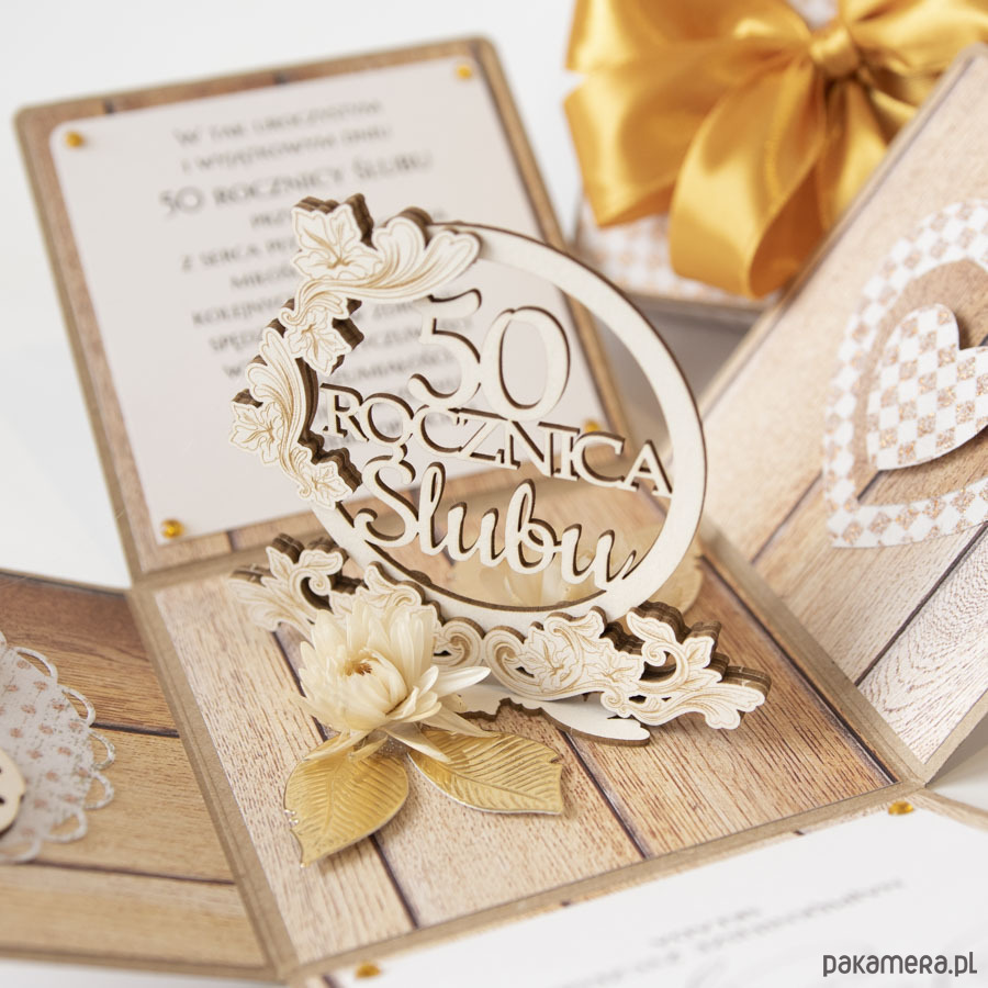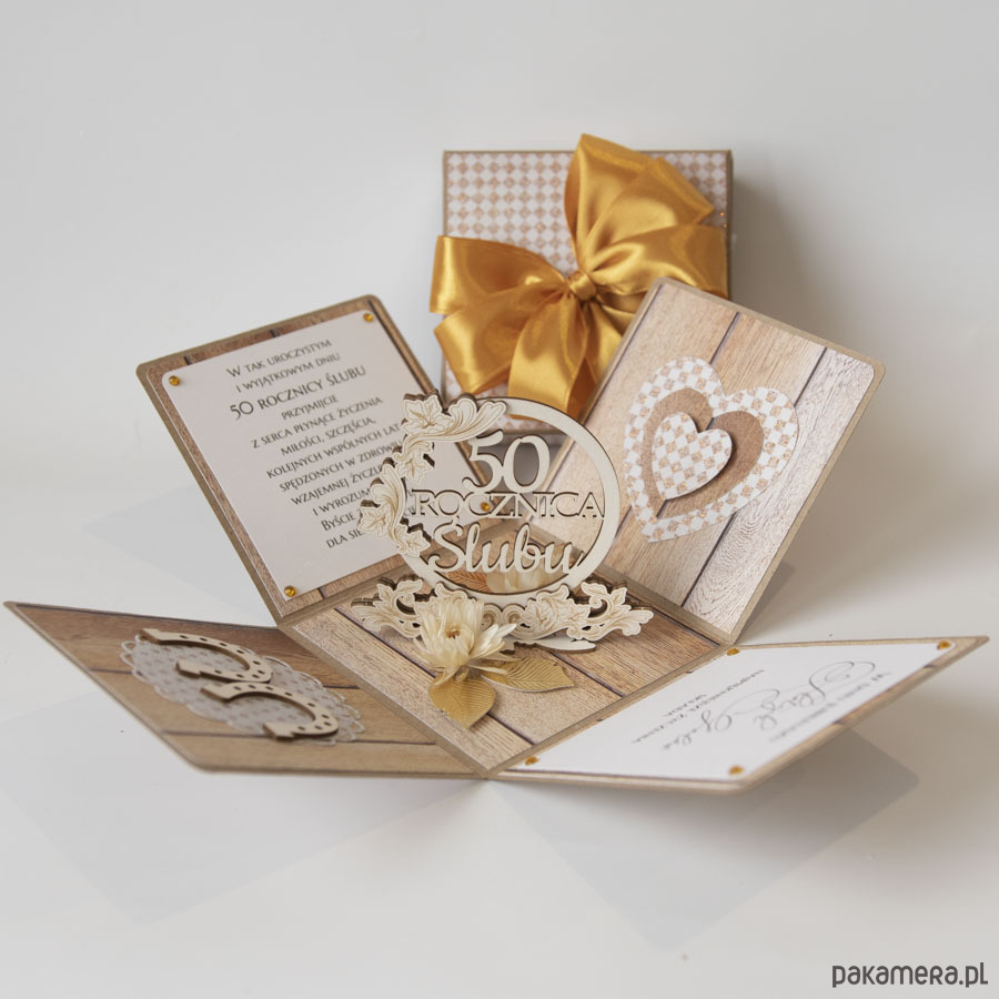 50 rocznica ślubu, złote gody, exploding box, kartka 3d