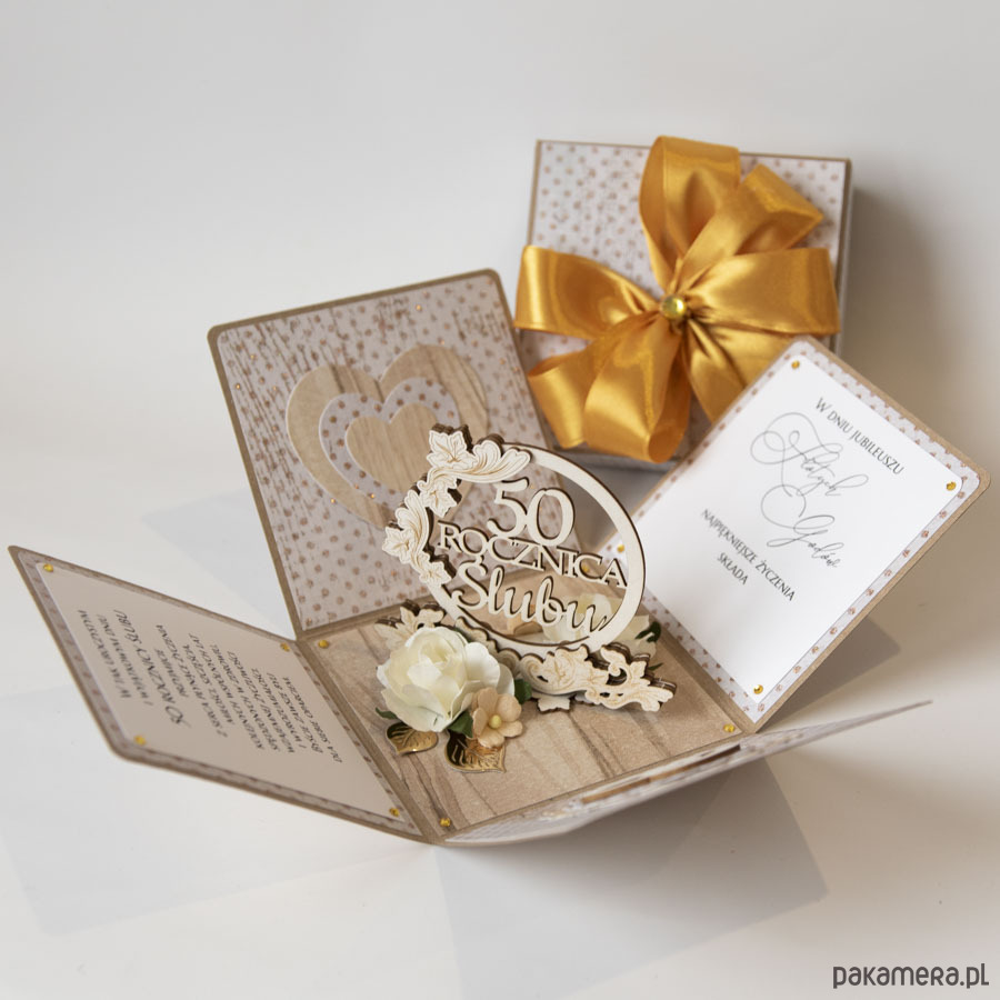 50 rocznica ślubu, złote gody, exploding box, kartka 3d