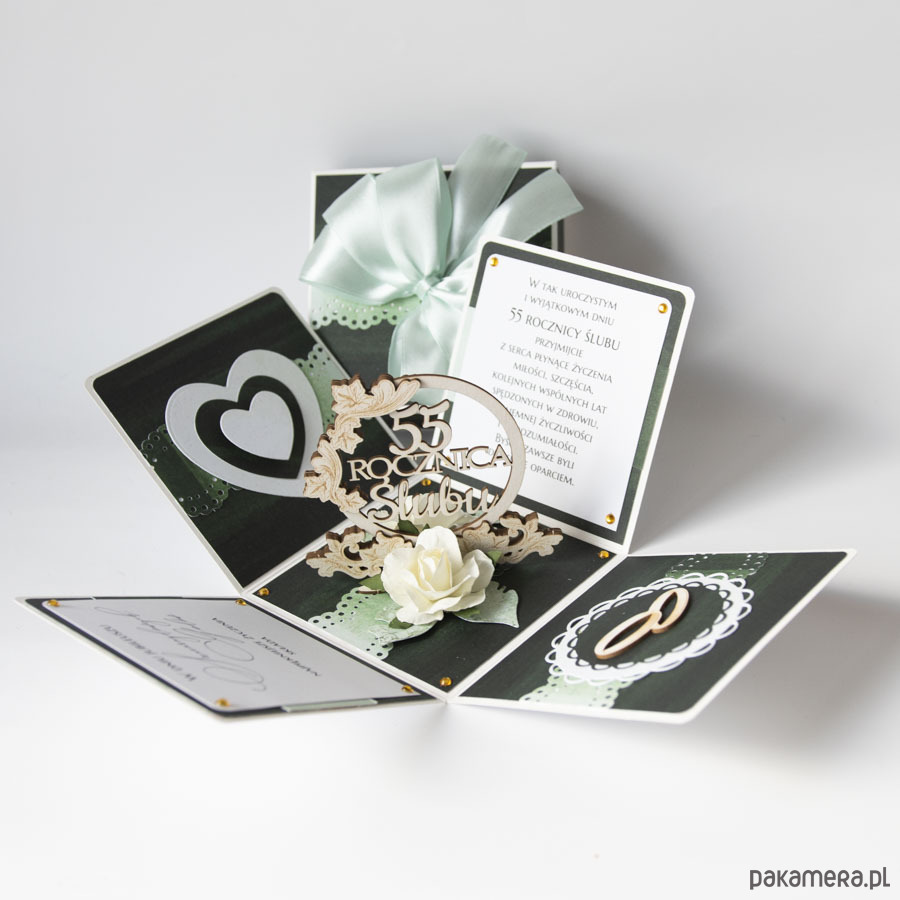 55 rocznica ślubu, szmaragdowe gody, exploding box, kartka 3d