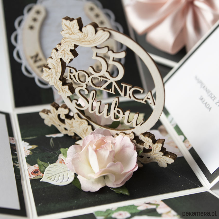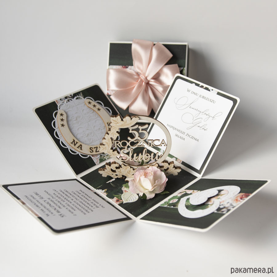55 rocznica ślubu, szmaragdowe gody, exploding box, kartka 3d