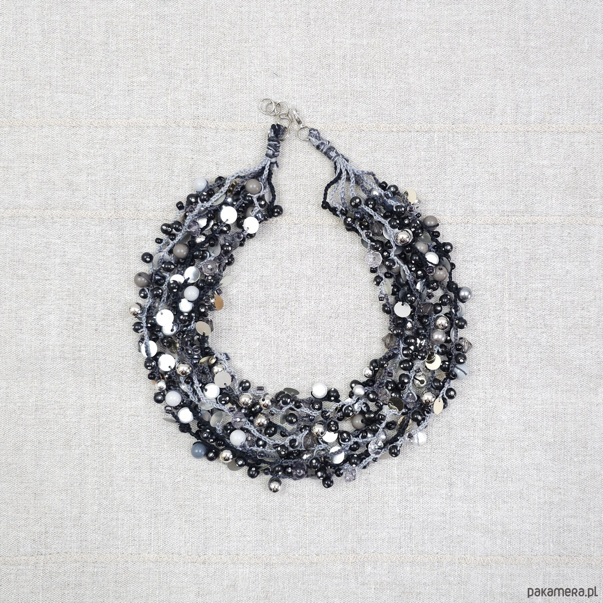 Ten naszyjnik to kompozycja w odcieniach czerni, szarości i srebra, która pięknie odbija światło, dodając blasku każdej stylizacji. Idealny do wieczorowych kreacji, jak i jako odważny akcent do dziennego looku.