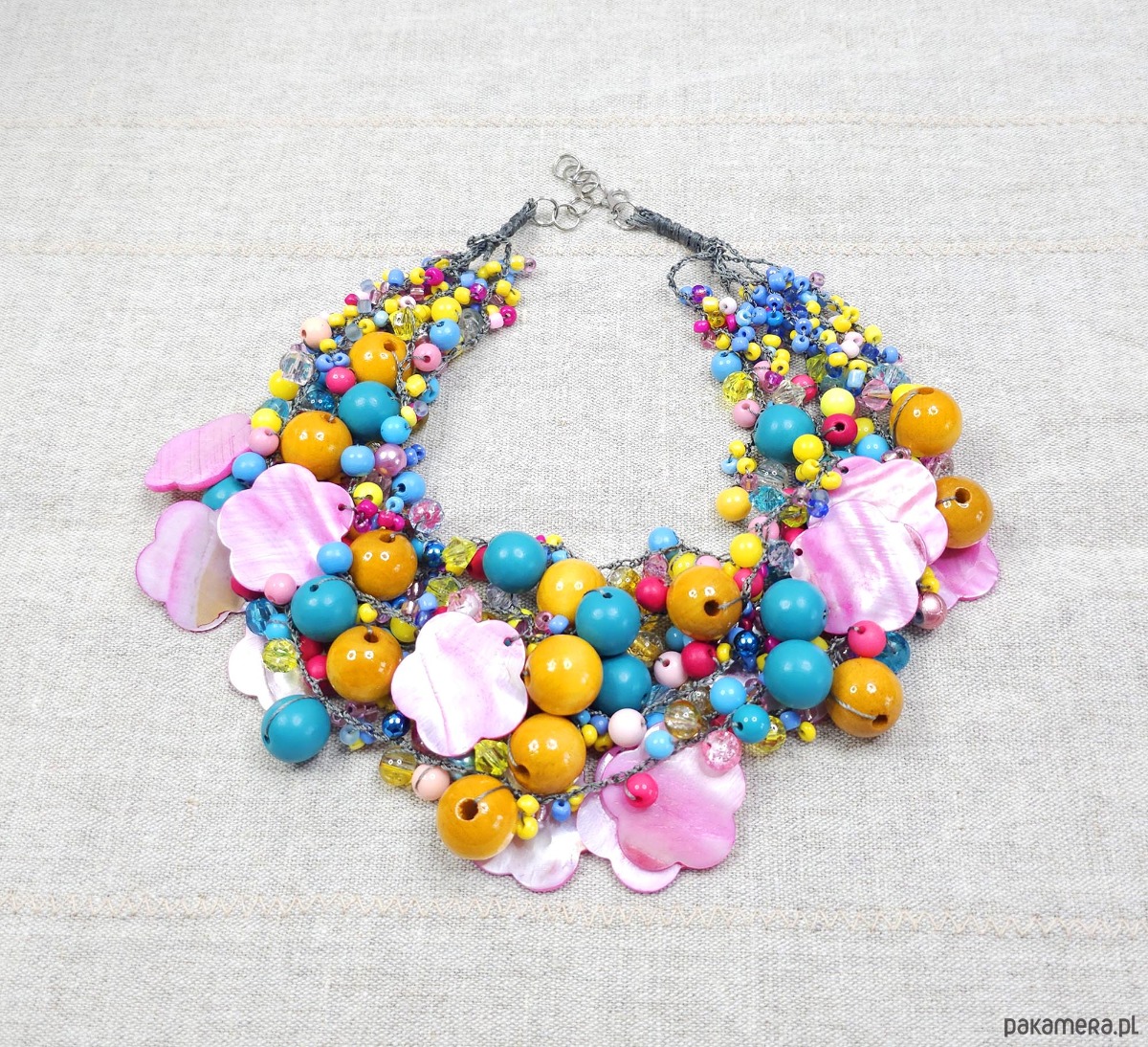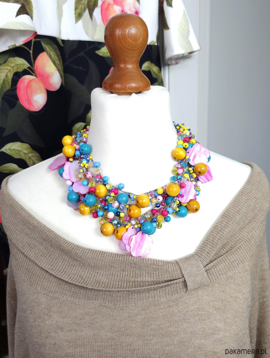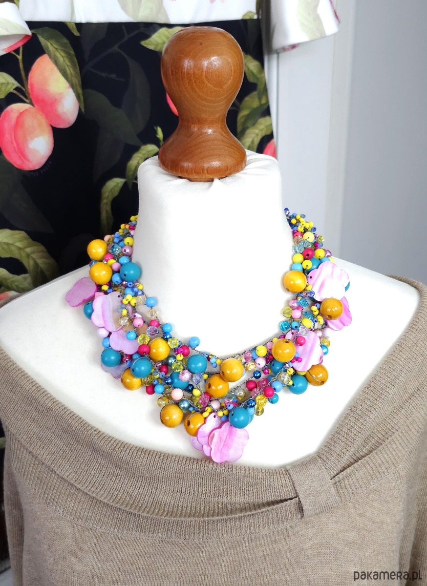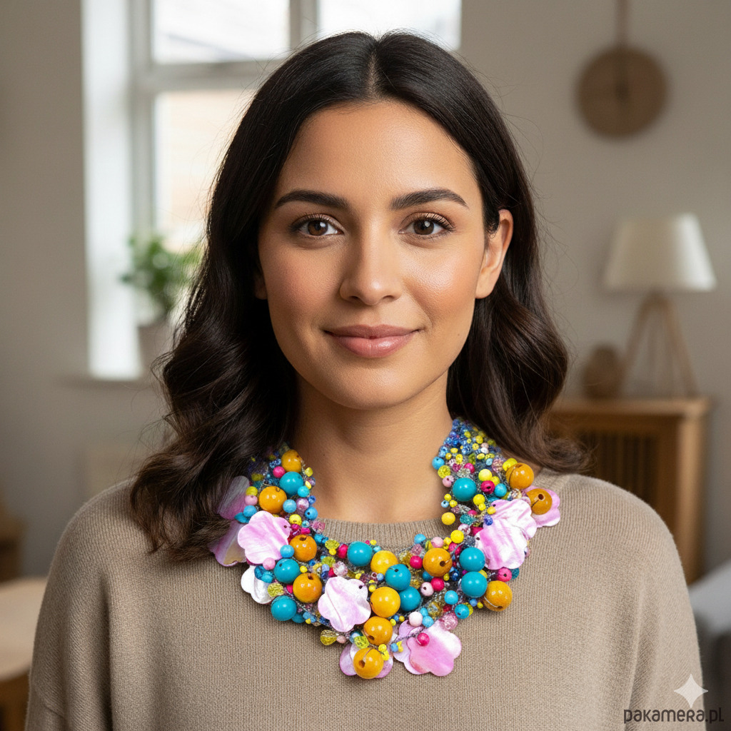 Oto wyjątkowy naszyjnik, który przyciąga wzrok bogactwem barw i faktur.