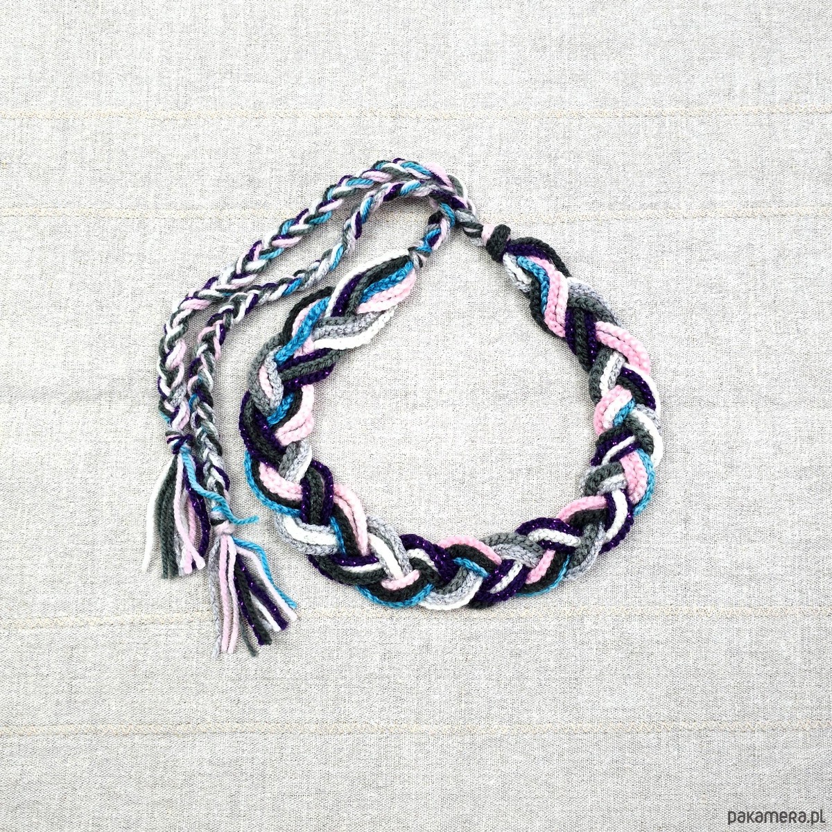 Naszyjnik wykonany z 12 szt. ręcznie plecionych sznurków, splecionych w luźny warkocz.