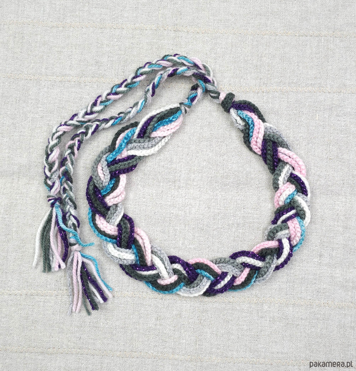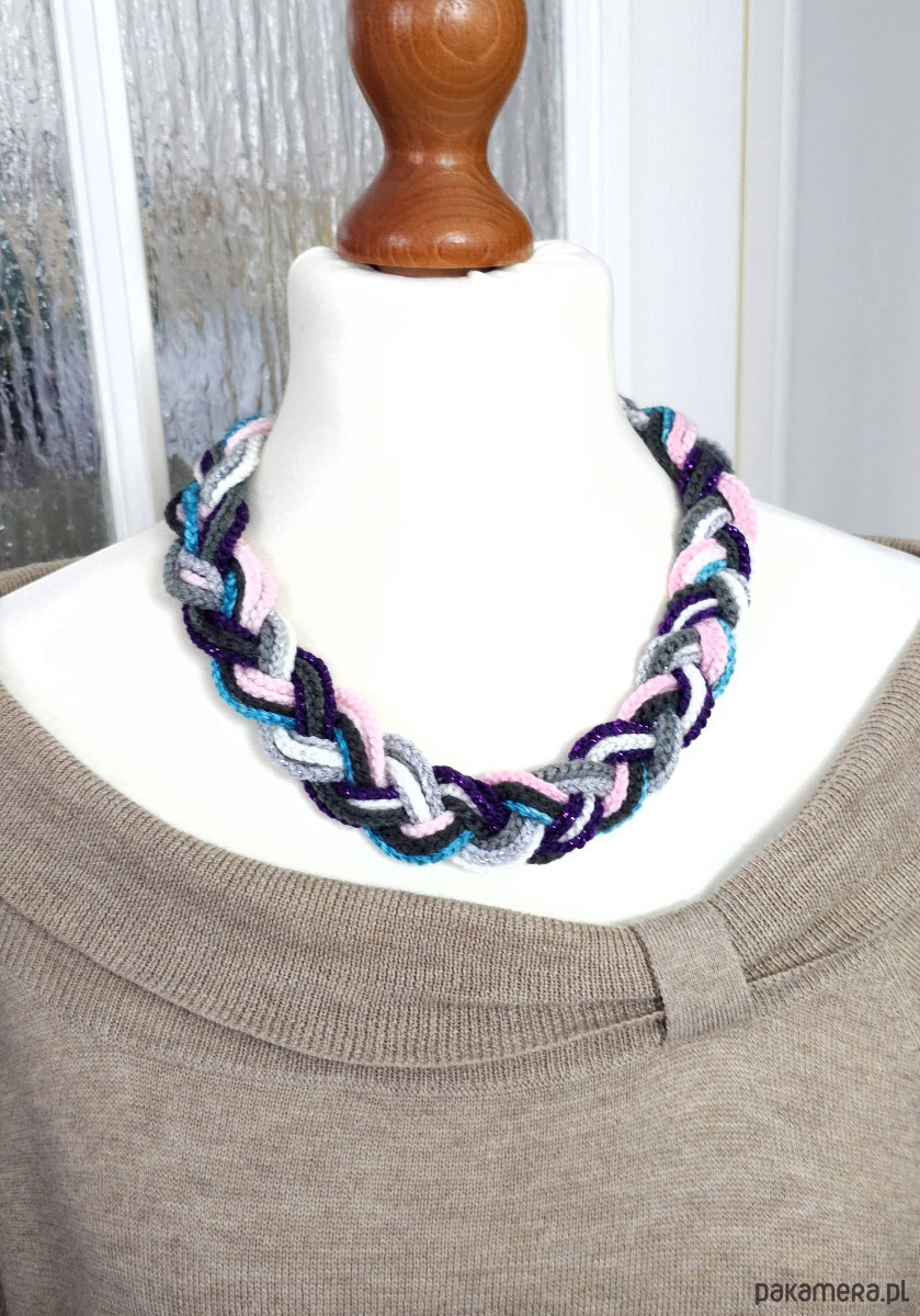 5777 Ręcznie robiony naszyjnik - warkocz w kolorach pastelowych.