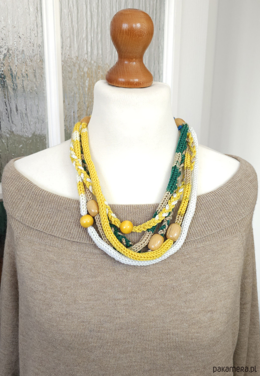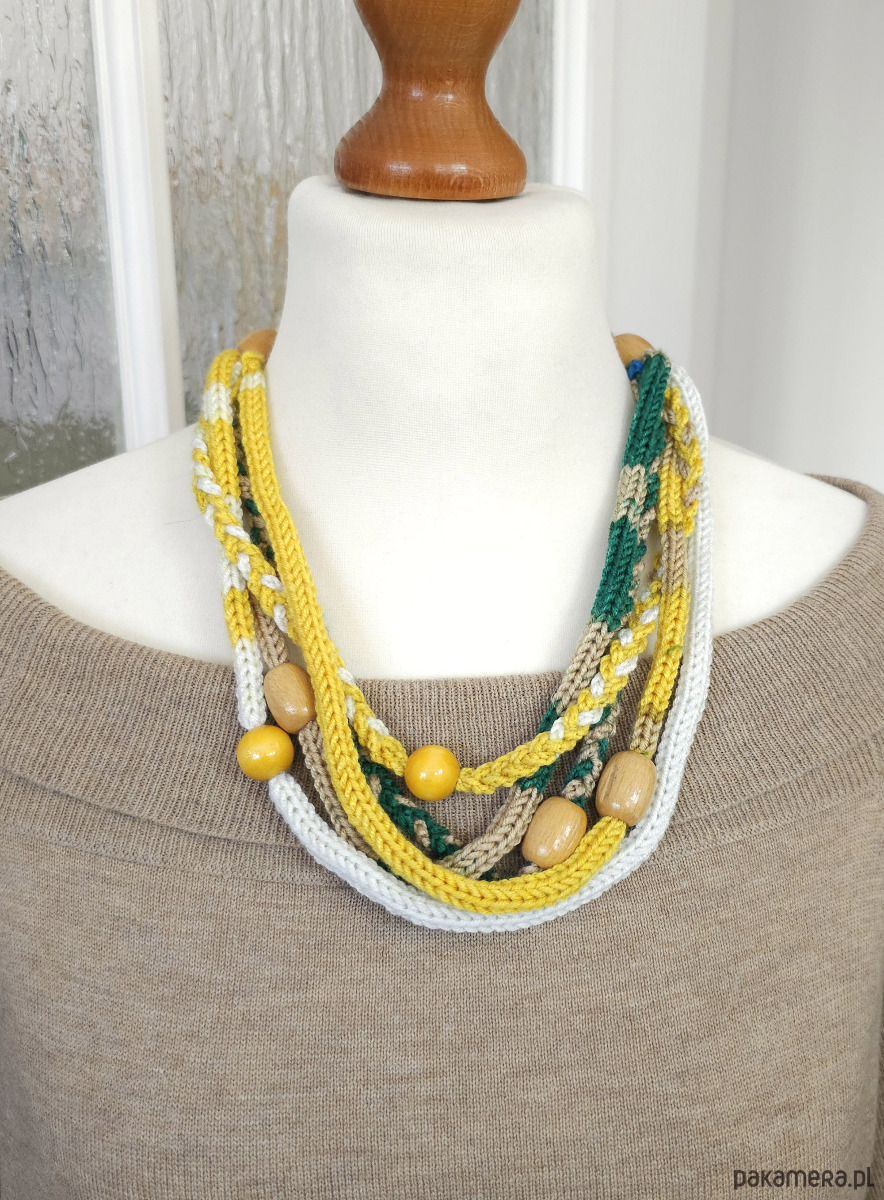 5845 Wyraź siebie kolorem! Jasny, lekki naszyjnik z włóczki.