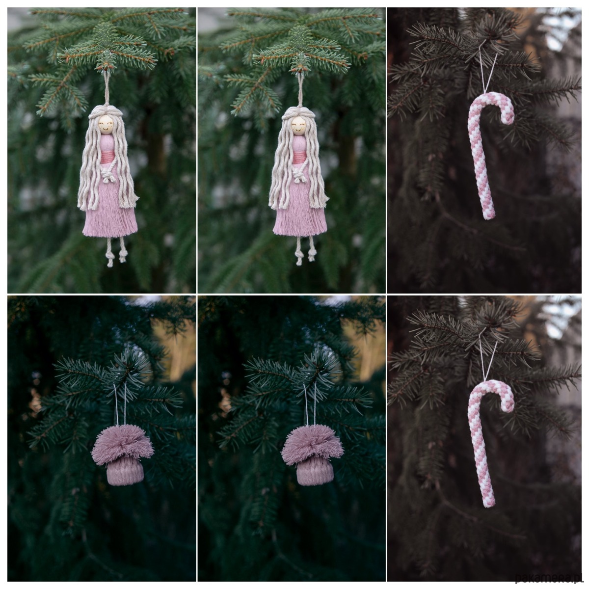 6 dekoracji na choinkę Biało fioletowe / Dostępne od ręki