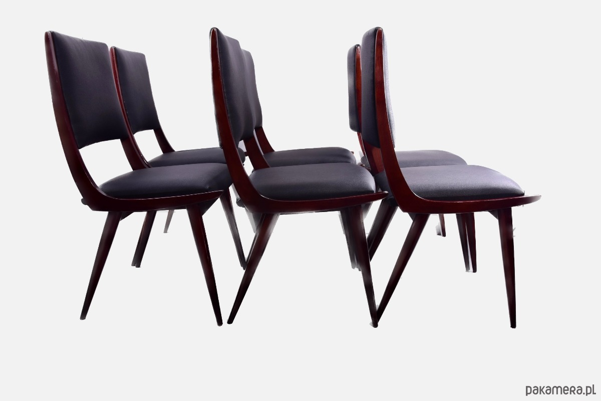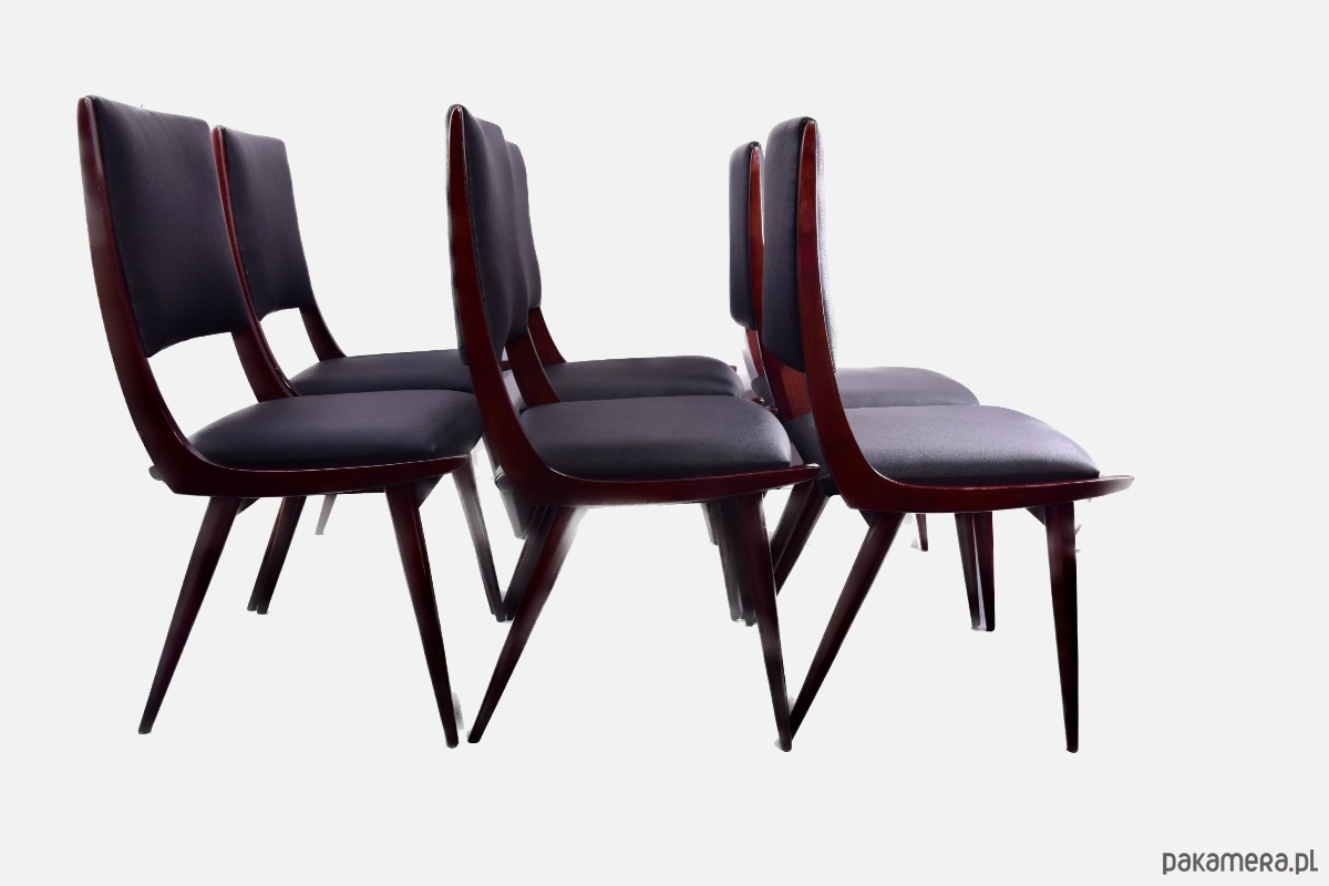 6 krzeseł w linii dynamicznej Boomerang włoski modernizm, lata 50/60
