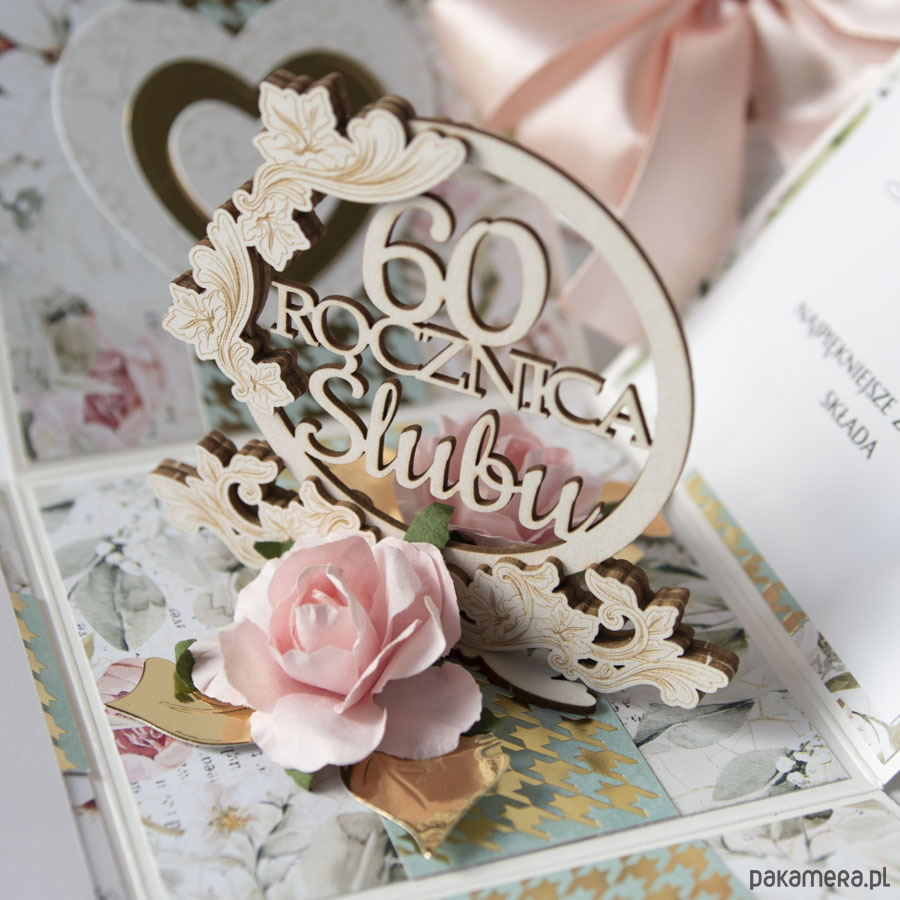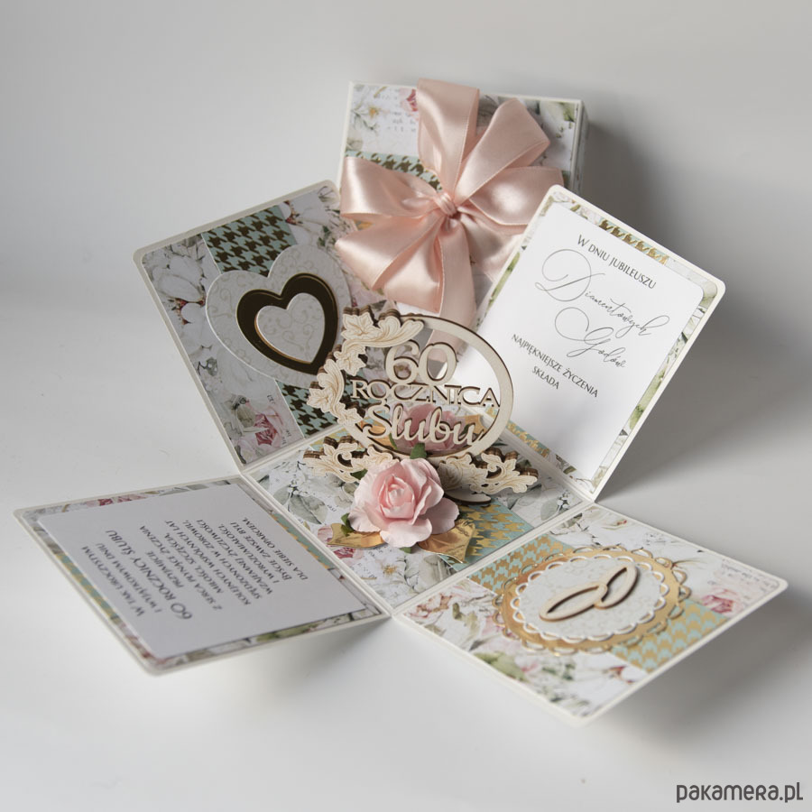 60 rocznica ślubu, diamentowe gody, exploding box, kartka 3d