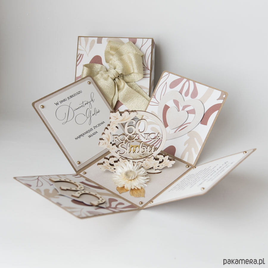 60 rocznica ślubu, diamentowe gody, exploding box, kartka 3d
