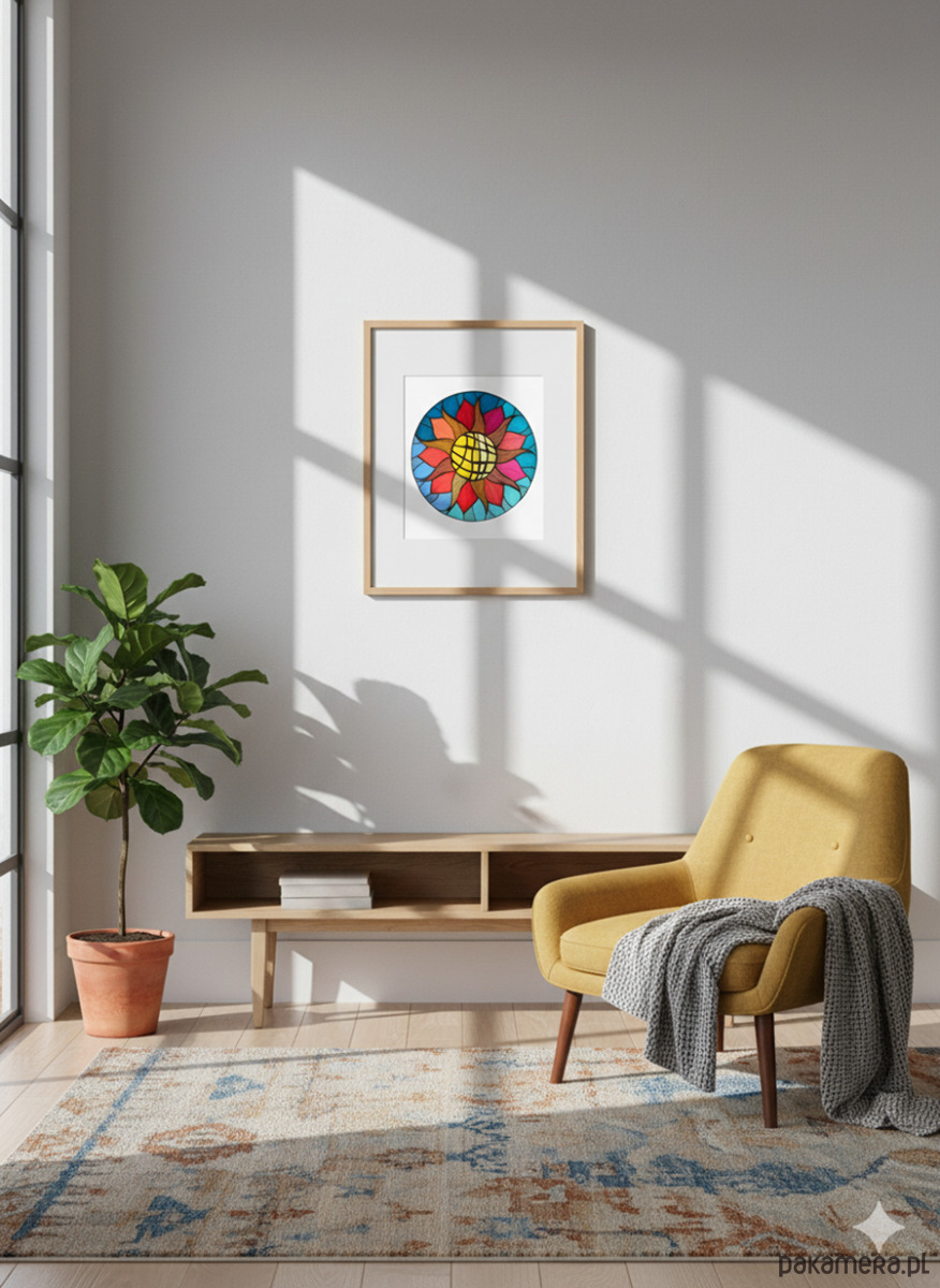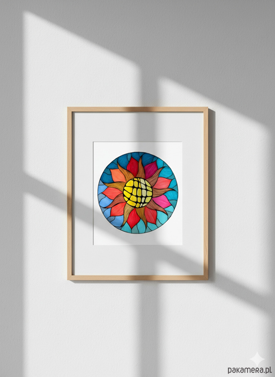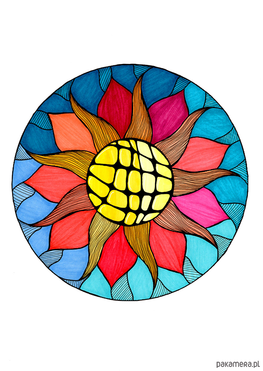 61. SŁONECZNA MANDALA - rysunek, plakat.