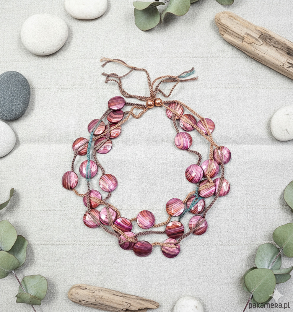 Ten efektowny, ręcznie wiązany naszyjnik to idealne połączenie blasku, koloru i wygody. Jest stworzony dla osób, które pragną wyróżnić się unikalnym, błyszczącym dodatkiem z charakterem.