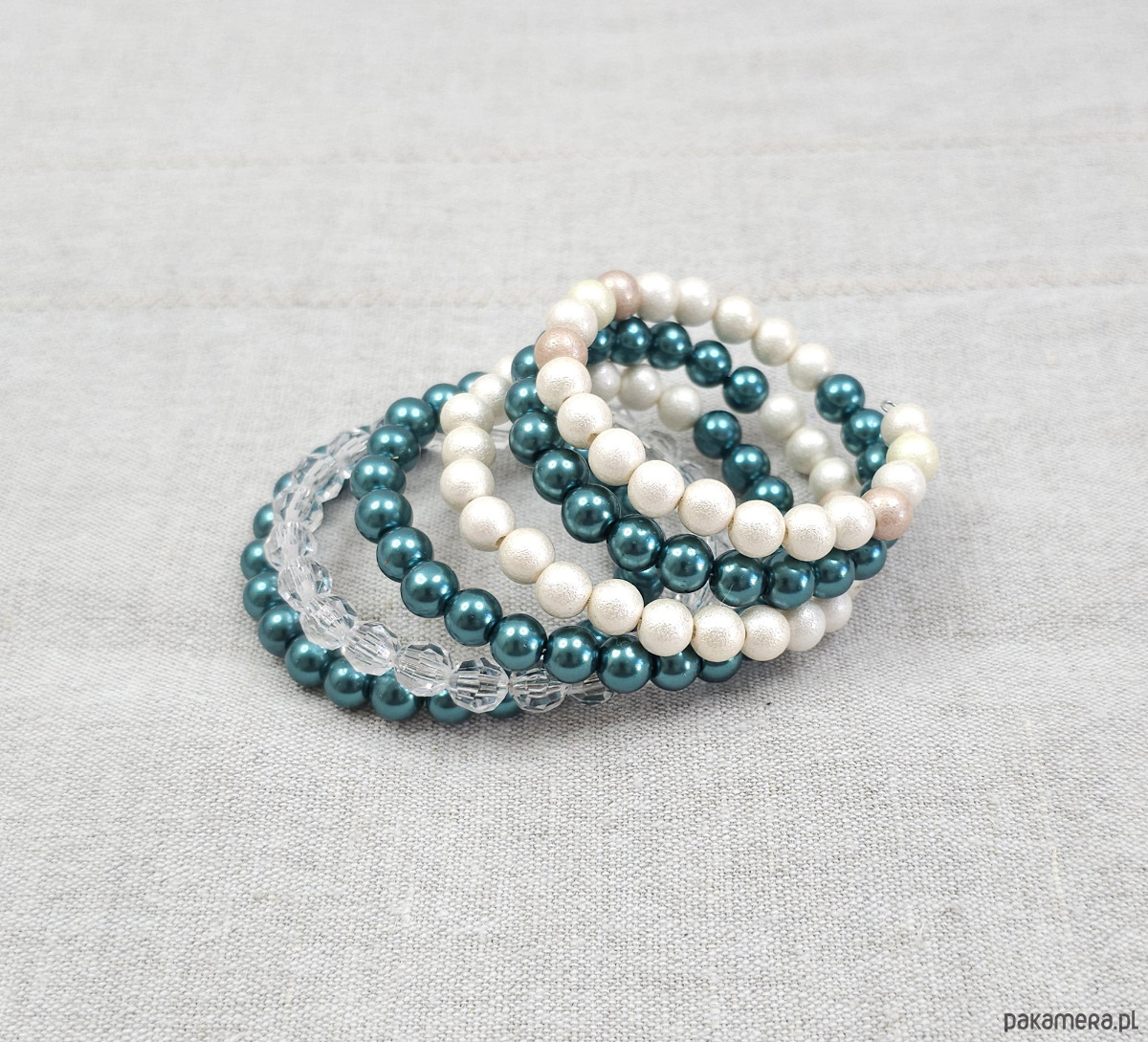 6205 wielorzędowa bransoletka; kremowa, zielona bransoletka