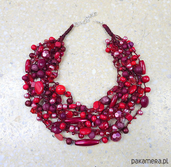 6258 czerwony, bordowy naszyjnik; kolia; lekki elegancki naszyjnik