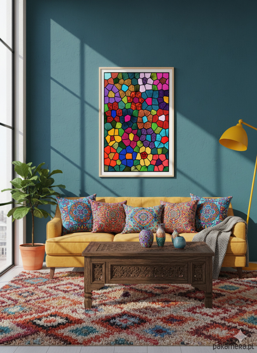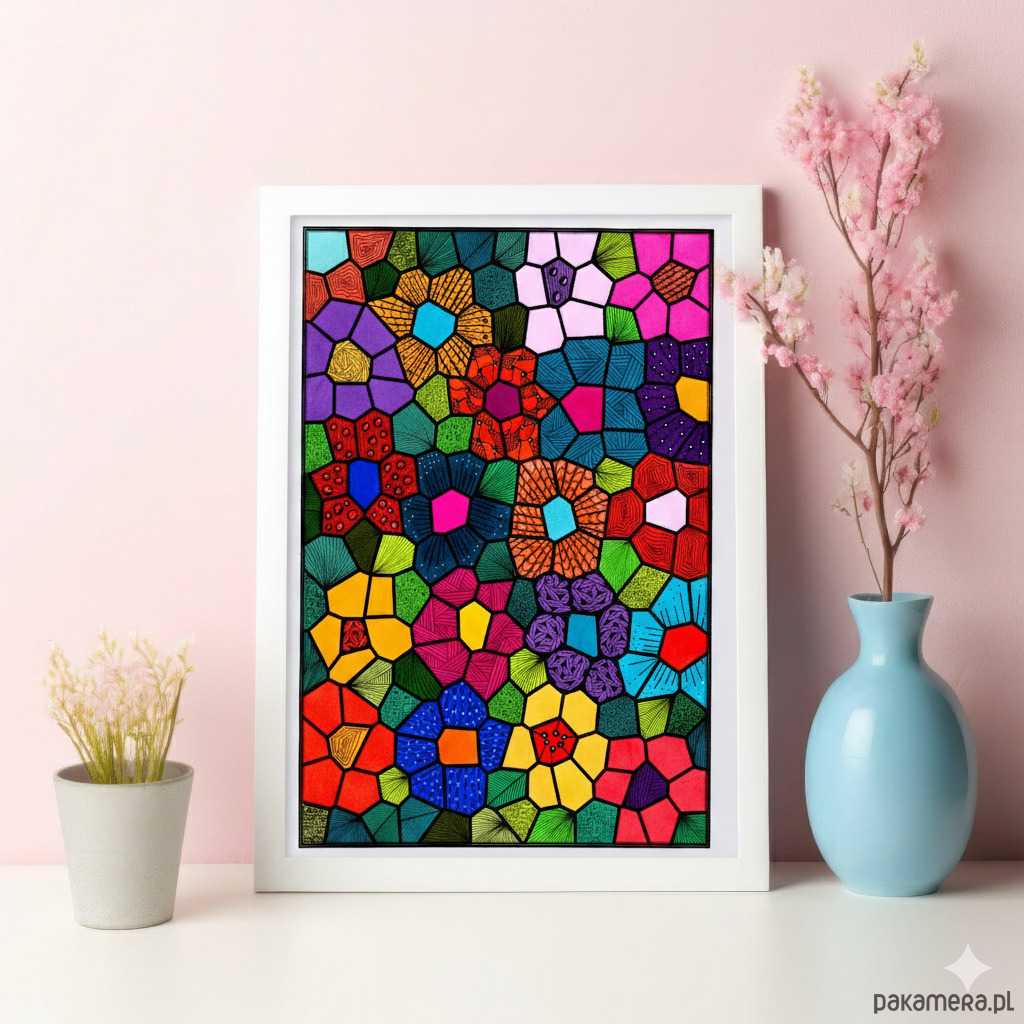 Ilustracja Abstrakcyjna, Geometria Komórkowa, Witraż/Mozaika (Stained Glass Style), Doodle Art/Zentangle Inspired, Pop Art