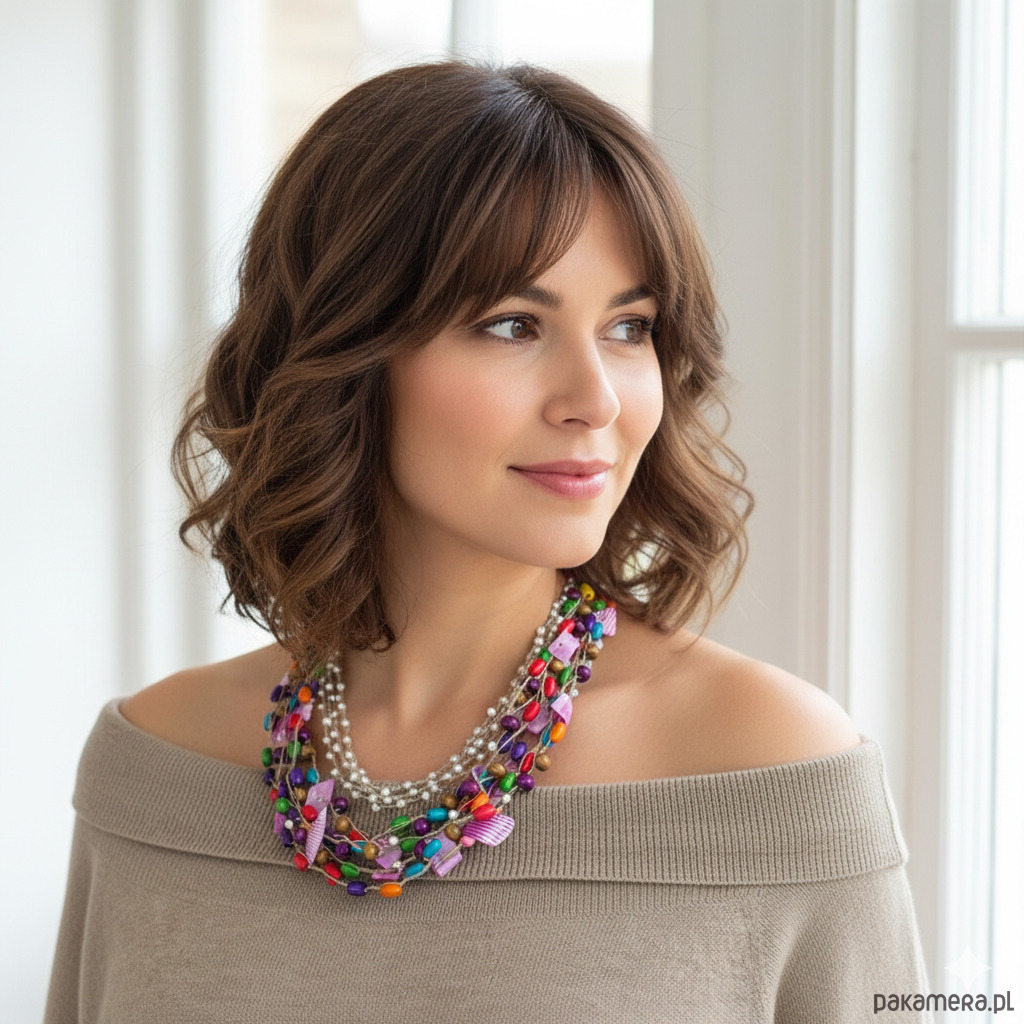 - Typ naszyjnika: wielorzędowy, koralikowy, statement
