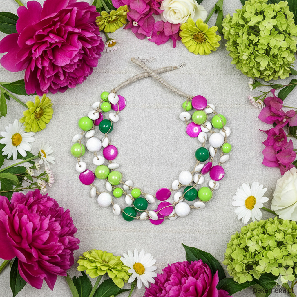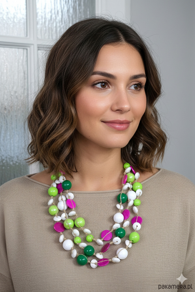 - Typ naszyjnika: wielorzędowy, koralikowy, statement