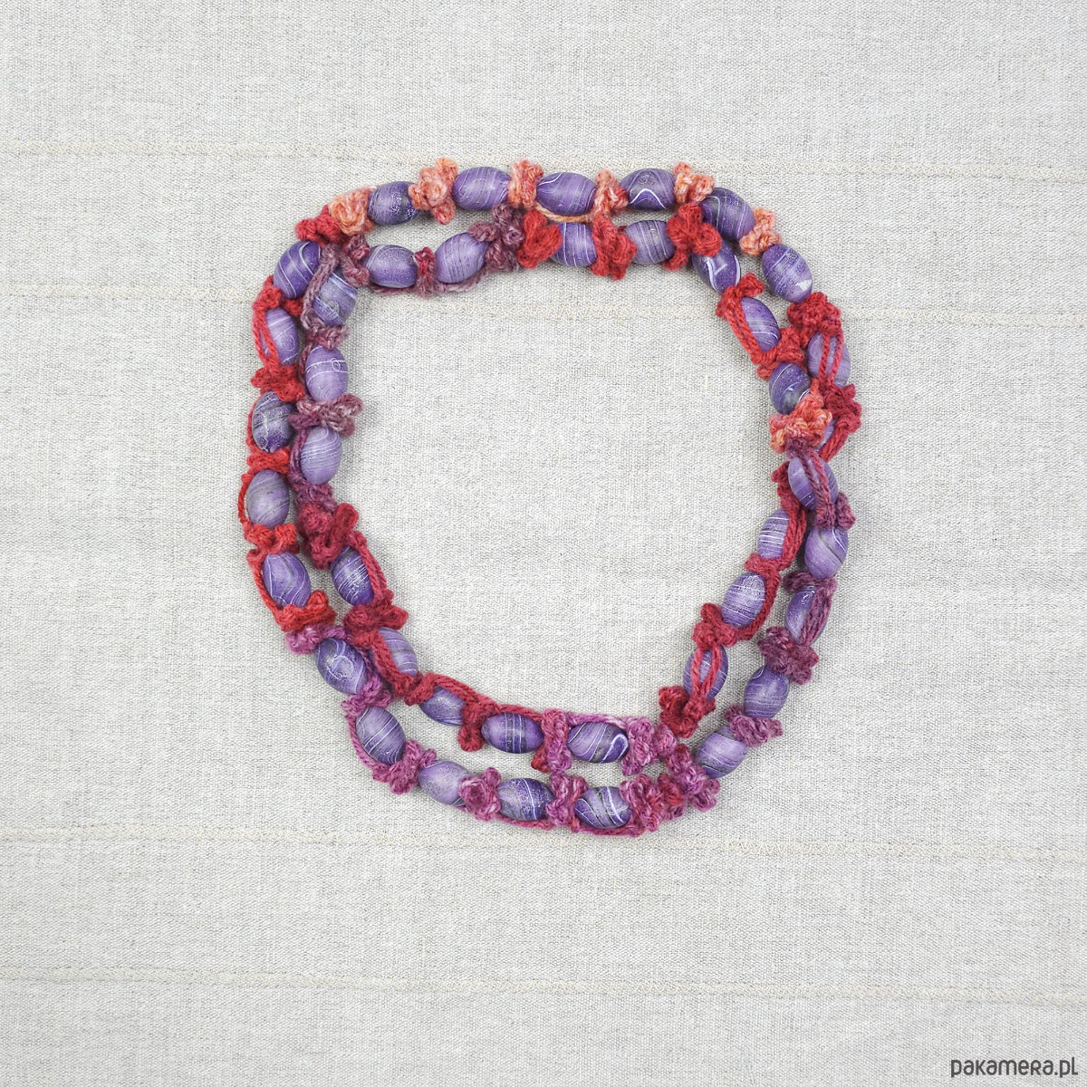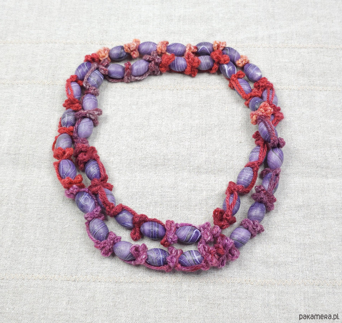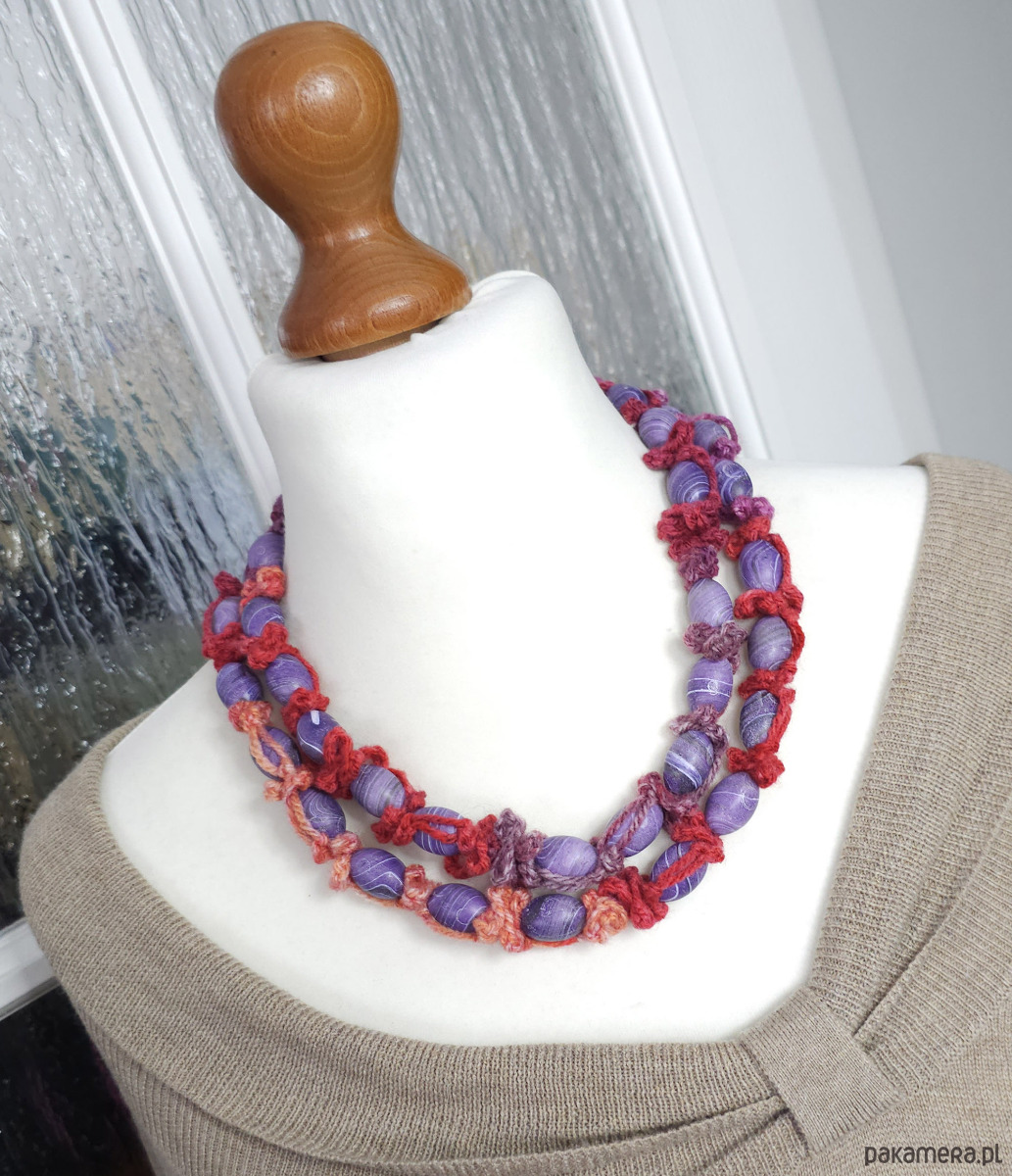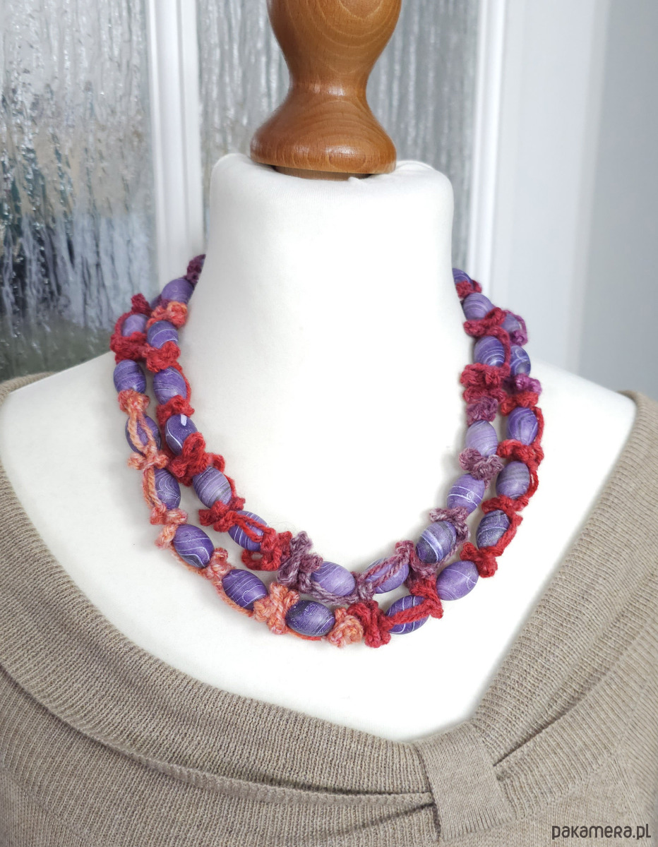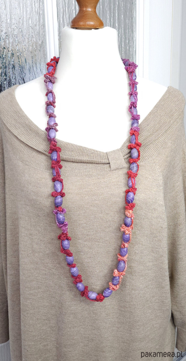 Naszyjnik wykonany z włóczki akrylowej.