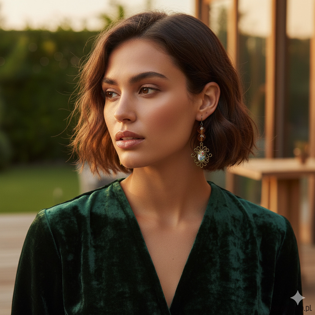 Te urocze, wiszące kolczyki to jedyne w swoim rodzaju dzieło, łączące styl vintage z osobistym, autorskim akcentem.