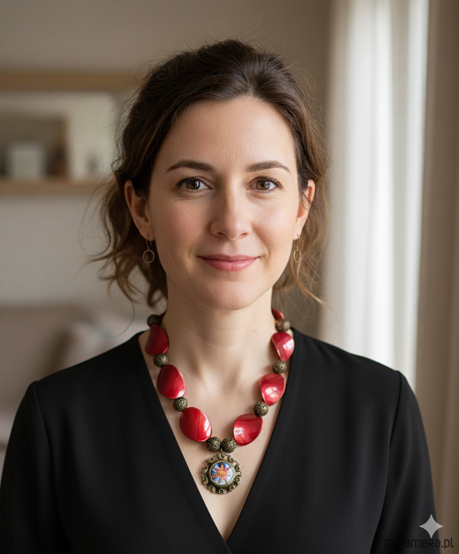 - Typ naszyjnika: z wisiorkiem, koralikowy, statement
