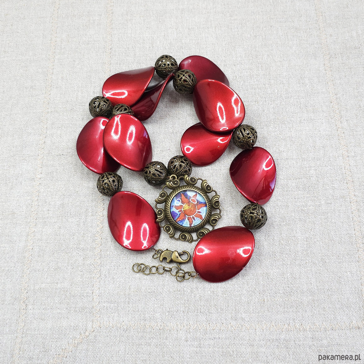 6736 duży, bordowo-brązowy naszyjnik z wisiorkiem; wisiorek słońce