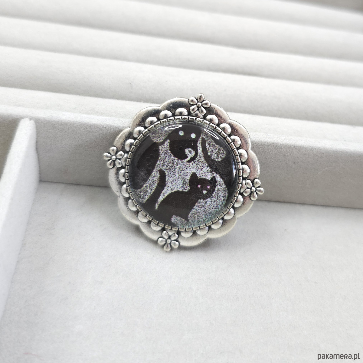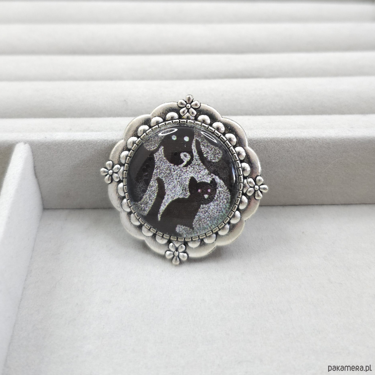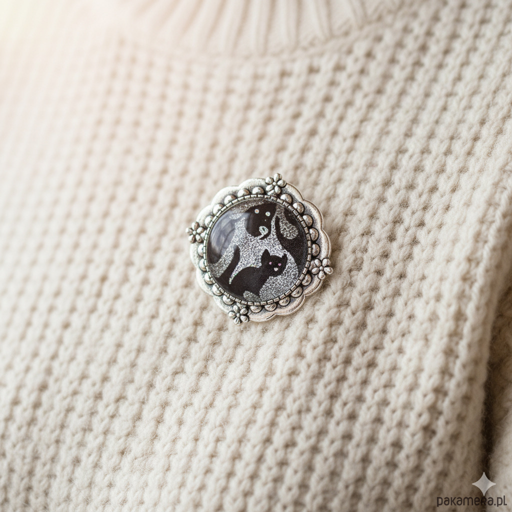 Otoczona piękną, stylizowaną ramą w kolorze antycznego srebra, ta broszka jest idealnym dodatkiem dla miłośników zwierząt i tych, którzy cenią symbolikę równowagi i jedności.