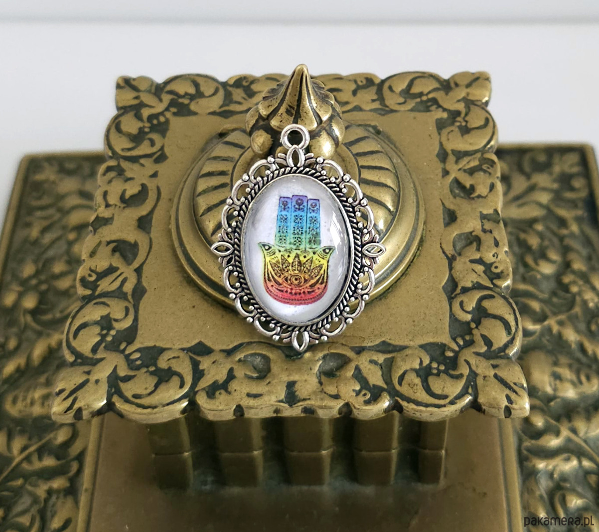 6851 Mistyczny Wisiorek Hamsa z Barwami Tęczy - Ochrona i Harmonia!