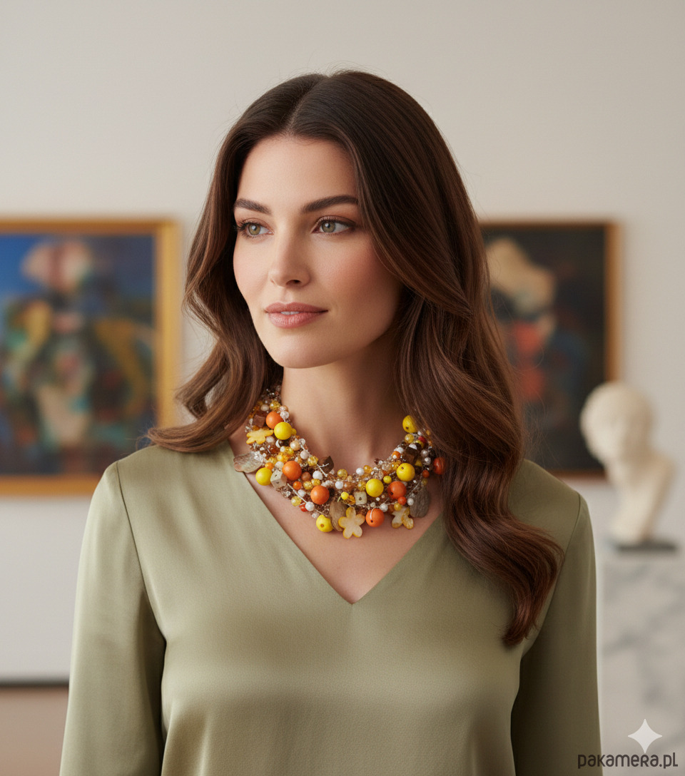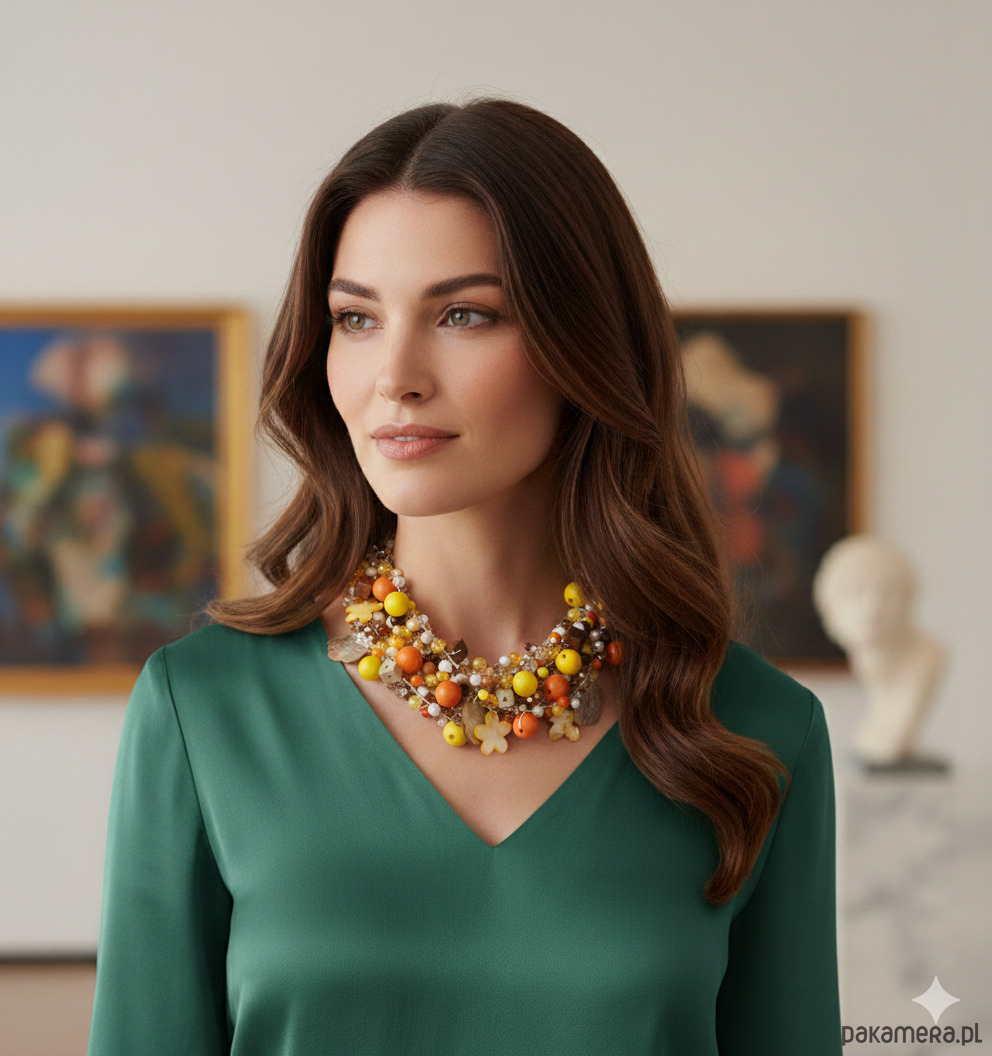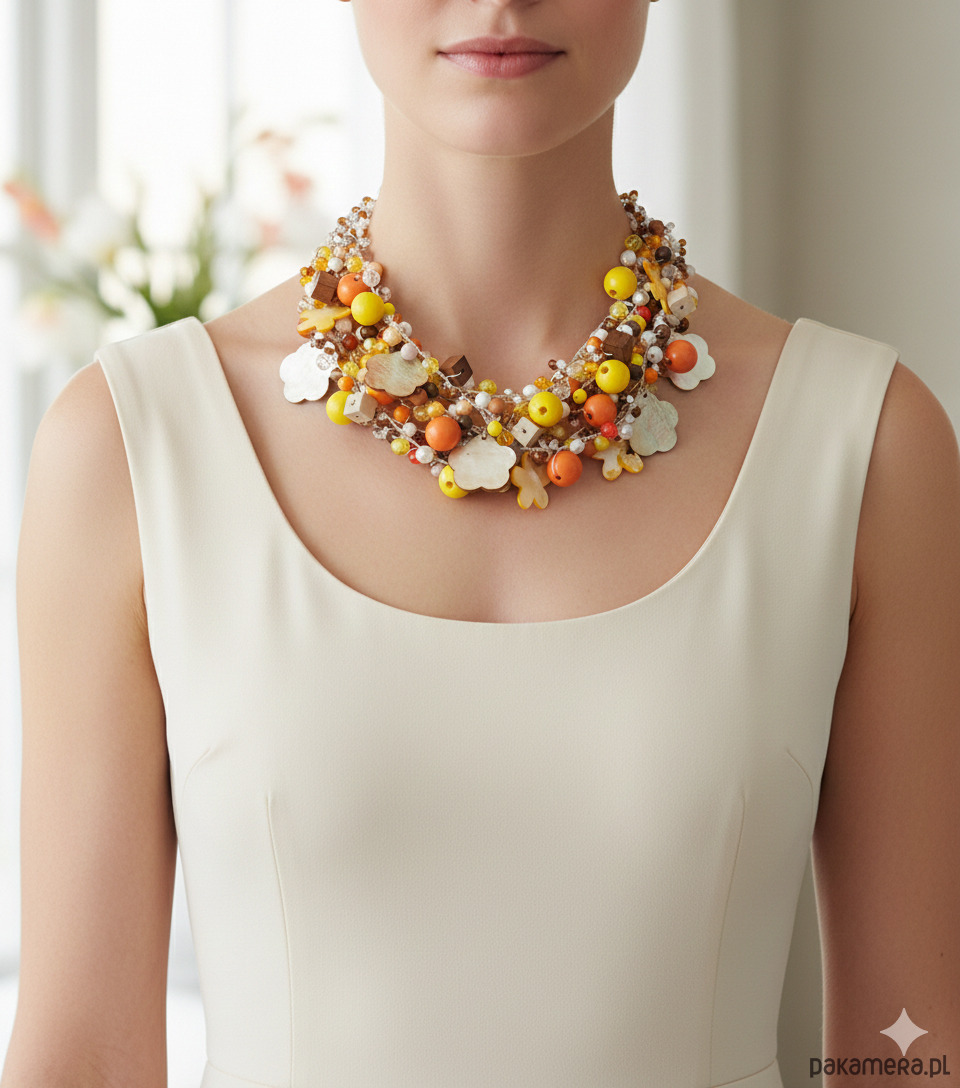 - Typ naszyjnika: wielorzędowy, koralikowy, statement