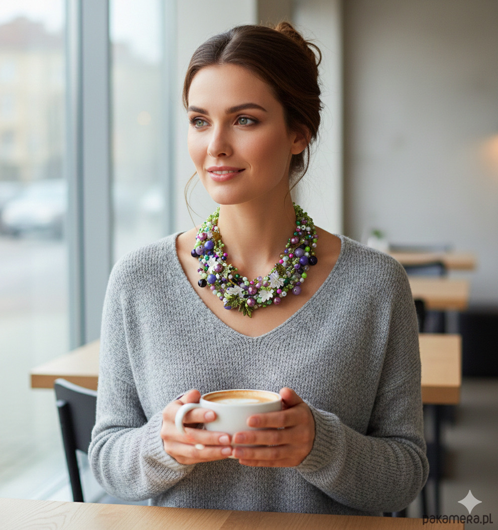 - Typ naszyjnika: wielorzędowy, statement, koralikowy