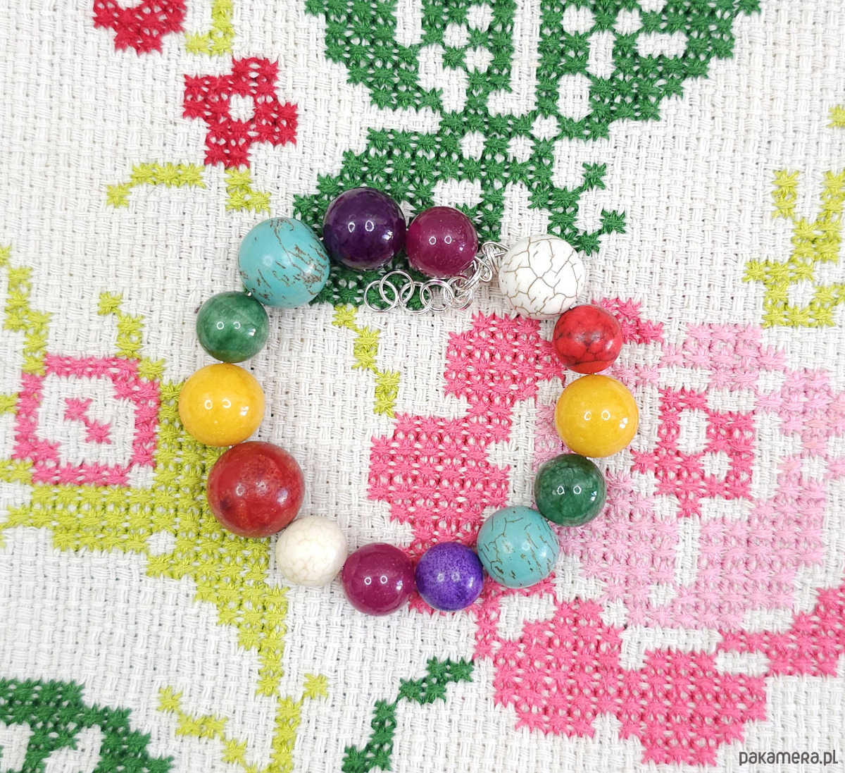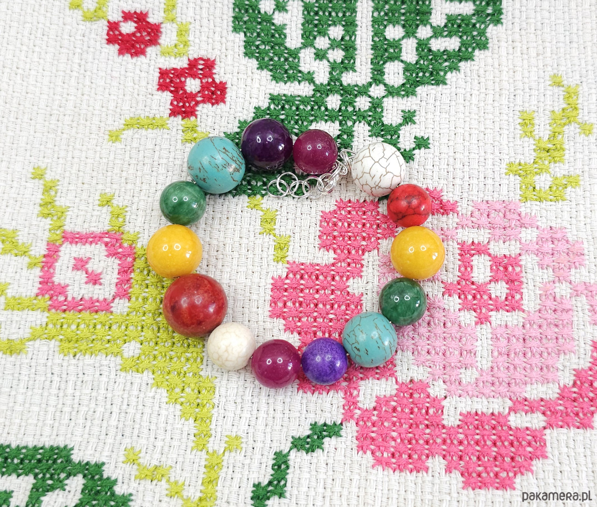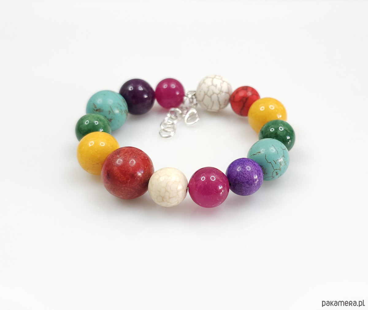 Materiały: howlit, jadeit, marmur, turkus, koral, agat (10-14 mm).