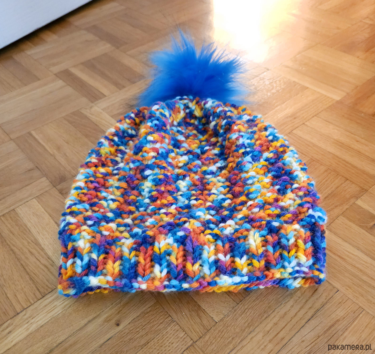 Czapka wykonana ręcznie na drutach z tureckiej włóczki.