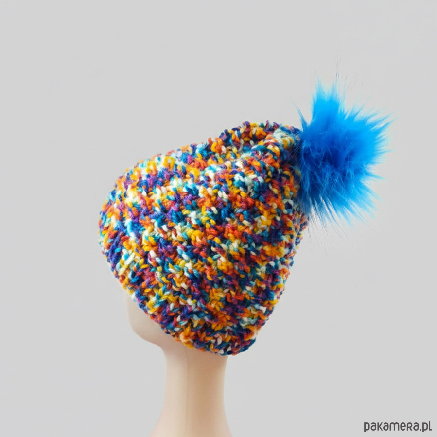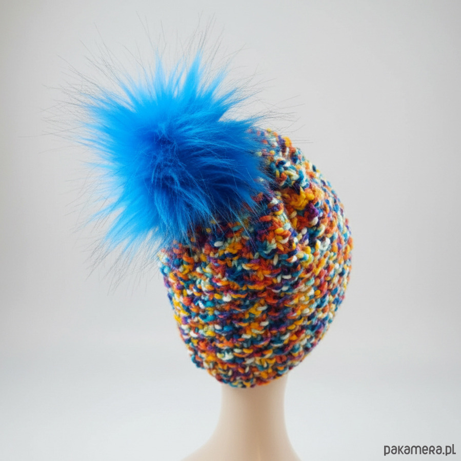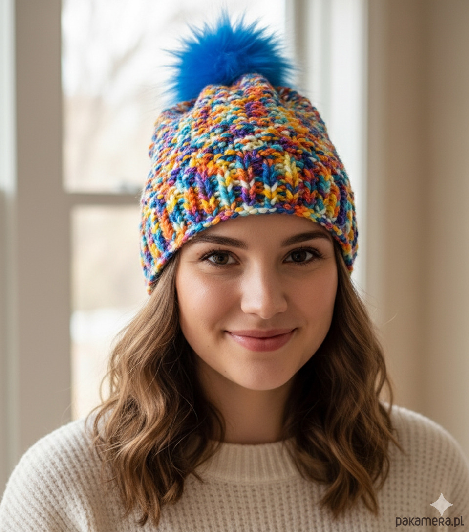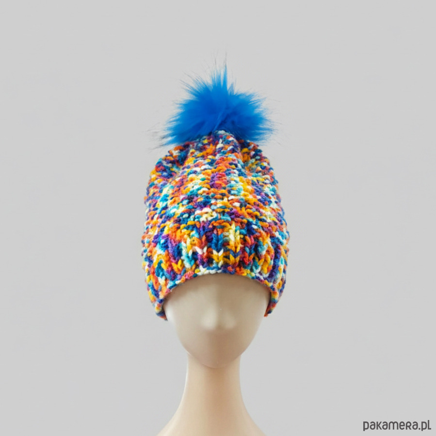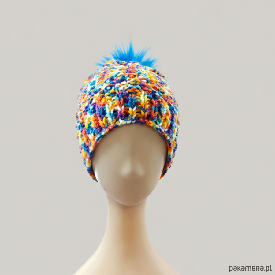 6899 Wesoła Czapka Zimowa Multikolor - Ciepła i Modna, czapka z pomponem