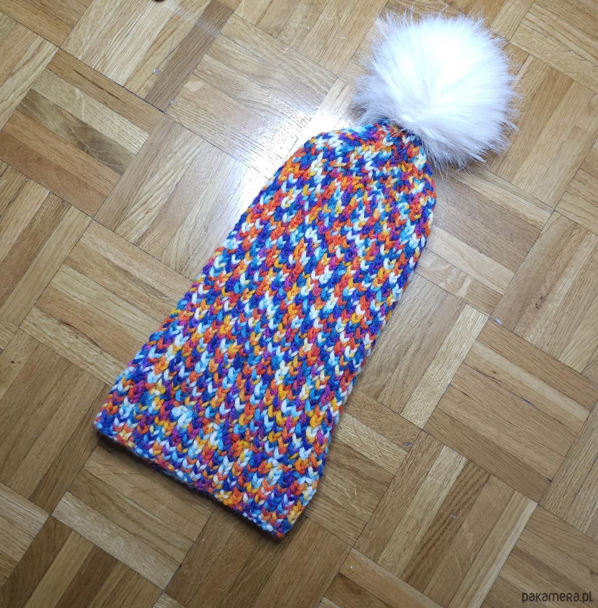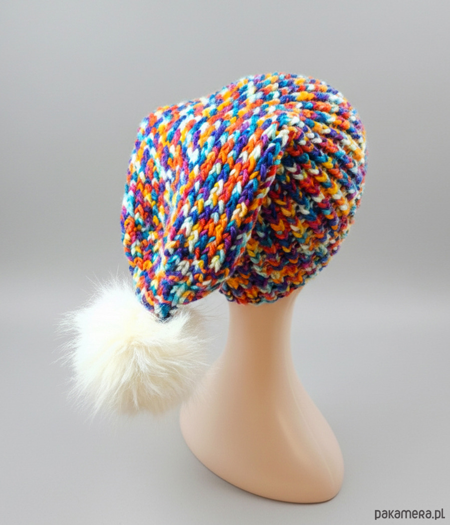 Czapka wykonana ręcznie na drutach z tureckiej włóczki.