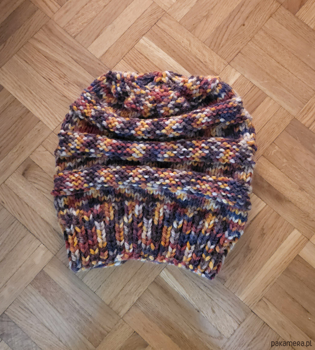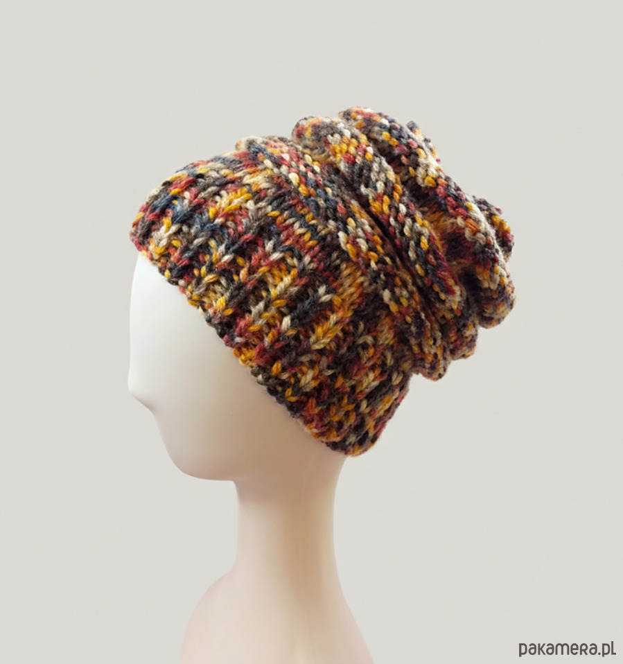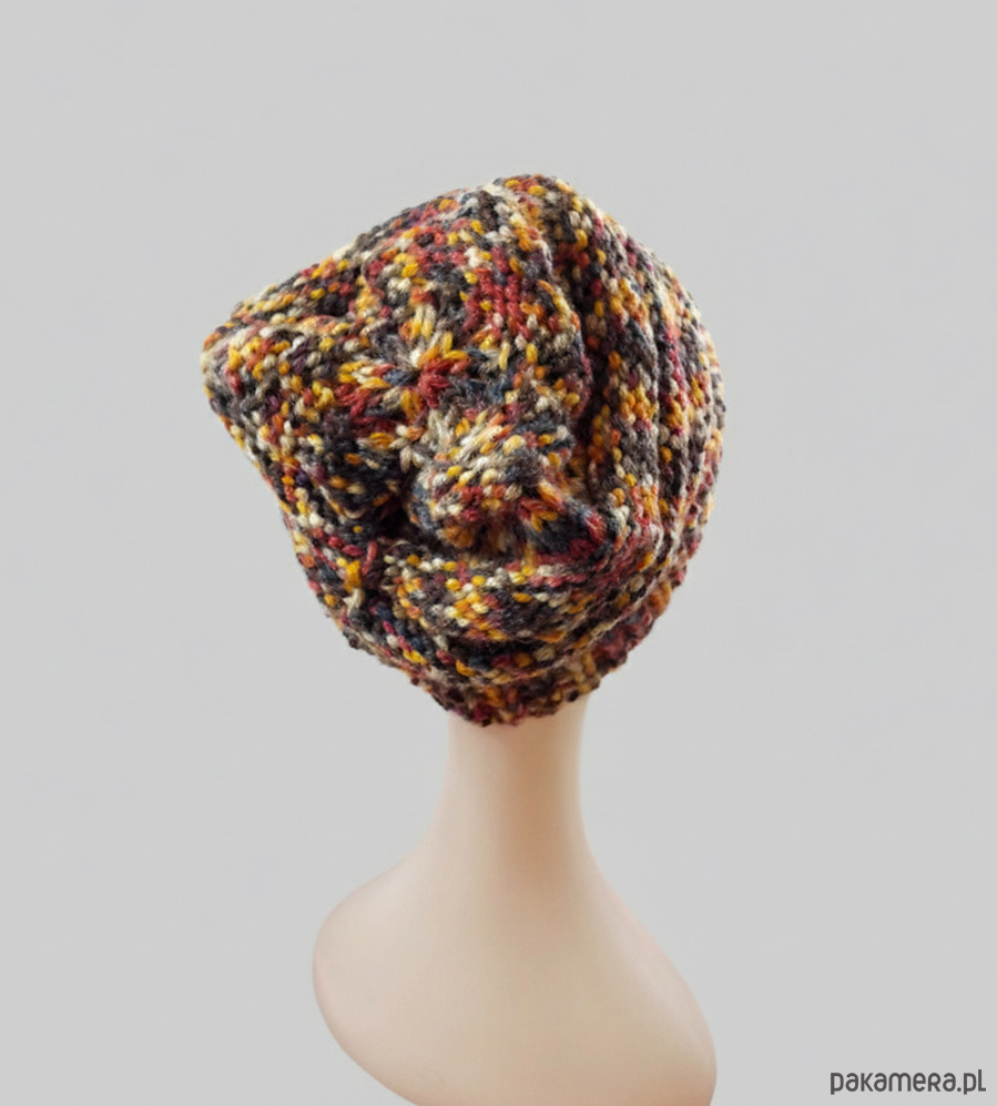 Czapka wykonana ręcznie na drutach z tureckiej włóczki.
