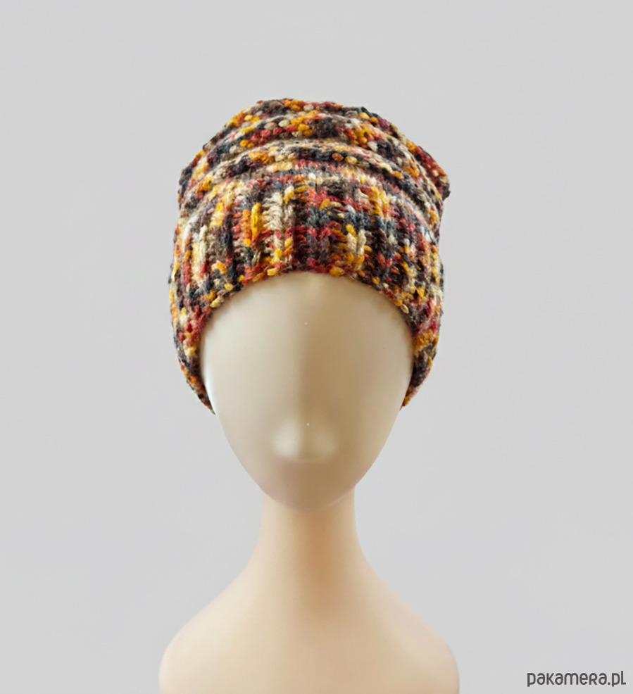 6902 Czapka Beanie z Melanżowej Włóczki - ciepła, brązowa