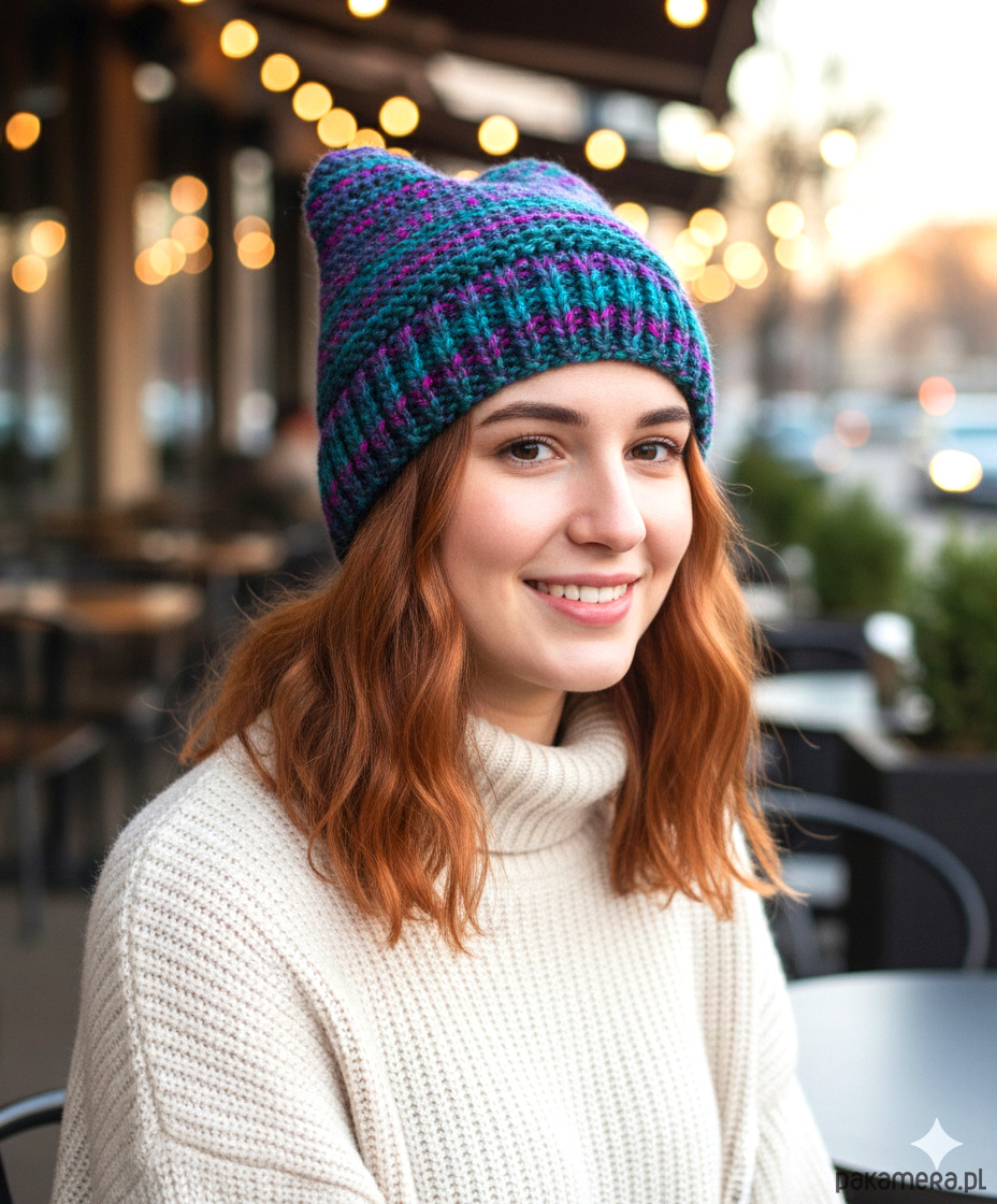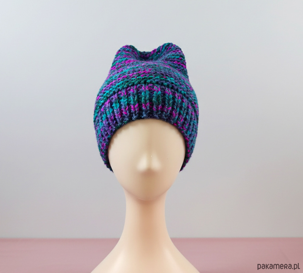 Czapka wykonana ręcznie na drutach z tureckich włóczek.