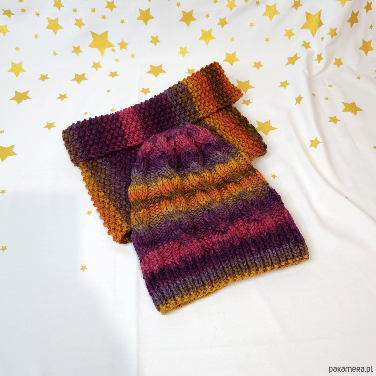 6916 Dzianinowy Zestaw Winter Sunset: Czapka i Komin
