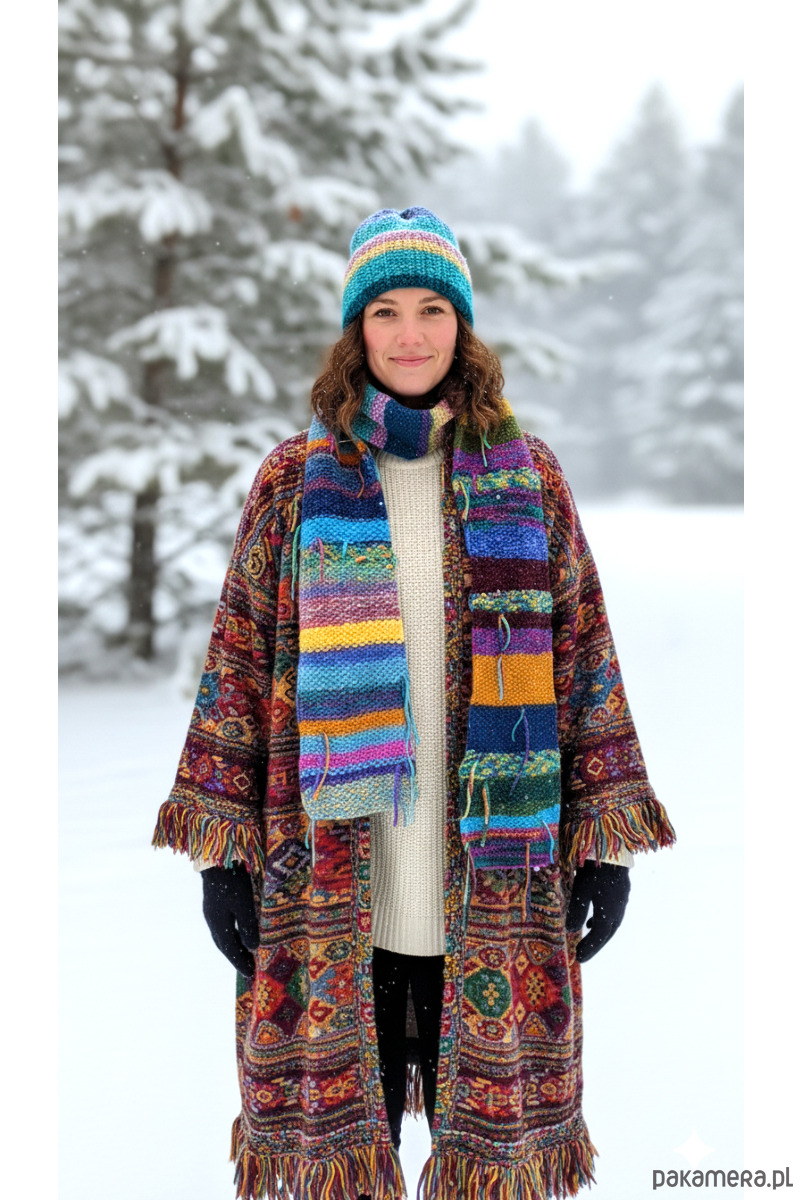 Ten szal to idealny wybór, aby dodać ekstrawagancji, ciepła i artystycznego wyrazu Twoim stylizacjom, jednocześnie wspierając ekologiczną modę.