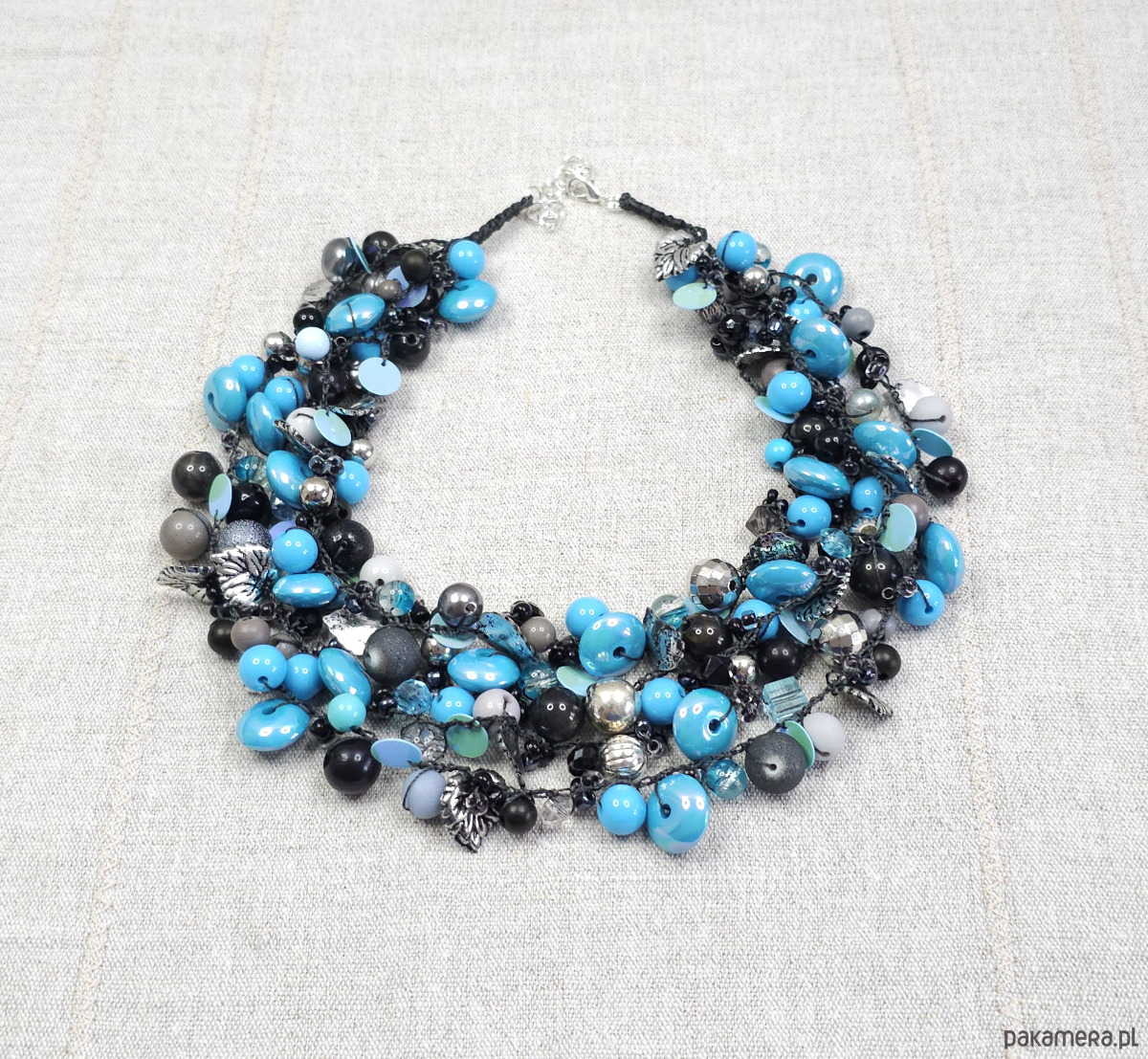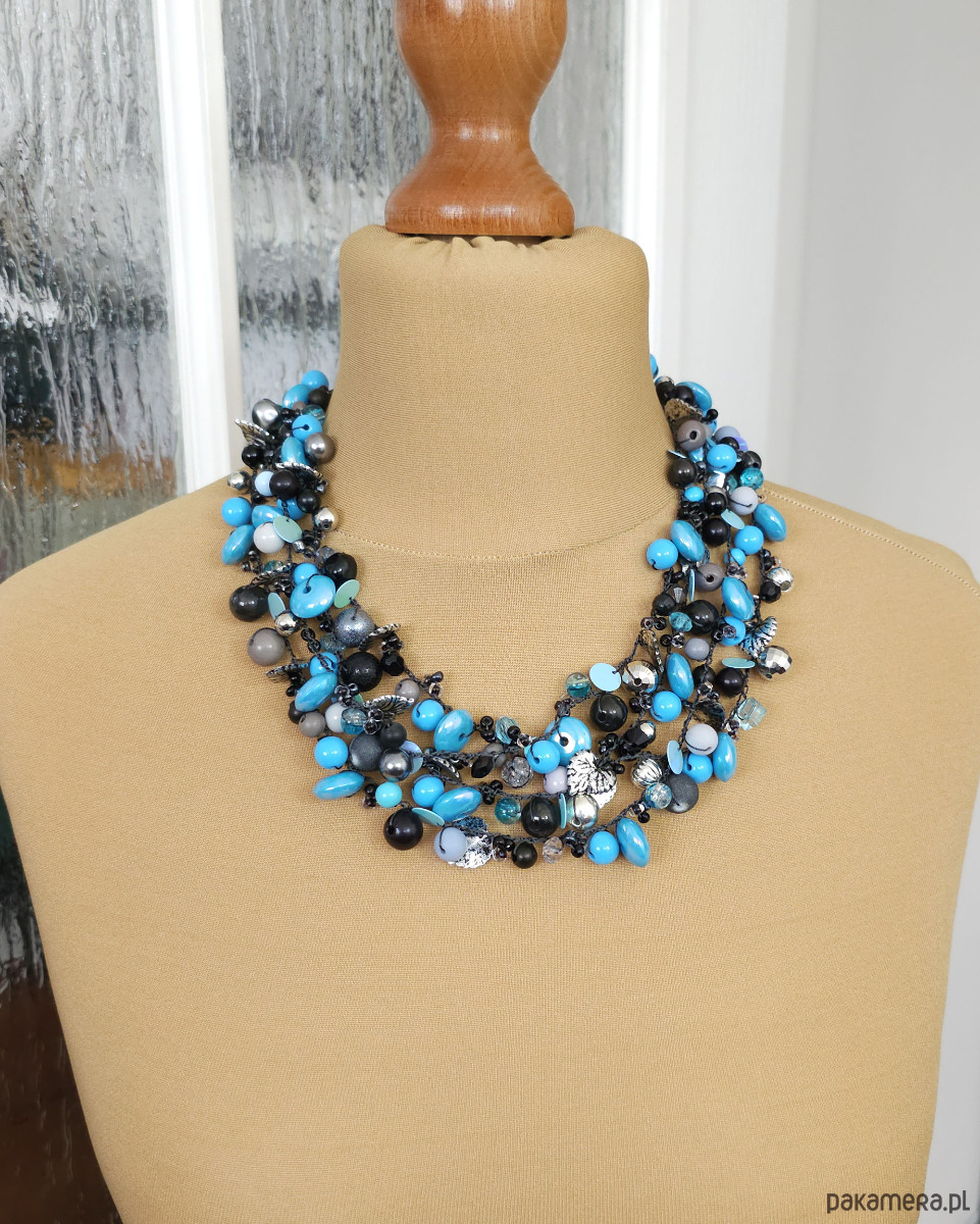 6934 Naszyjnik, kolia - niebieski, szary, czarny naszyjnik